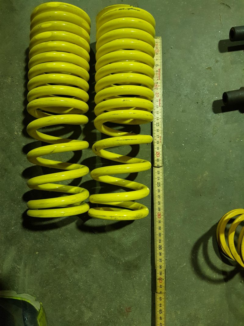 2st progressiva fjädrar Längd 300mm Innerdia 65mm Trådtjocklek 12mm 500 kr /paret?