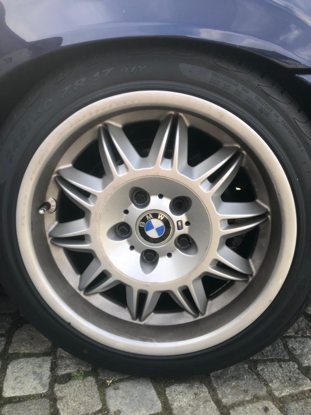 Har fyra DS2-fälgar till M3 med facelift, alltså bredare bak. Bra skick men litet skrap på en framfälg, ger ett riktigt bra intryck(otvättade på bild). Där sitter nästan helt nya P-zero däck i originaldimension 225/245mm till ett nypris av 5500kr. Finns att hämtas i Malmö, eventuellt kan det skickas på pall mot förskottsbetalning. Pris: bud.