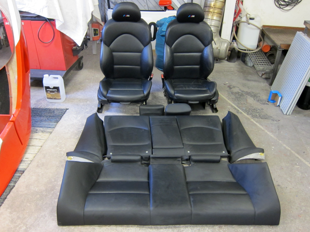Säljer förarstol, passagerarstol och baksäte som suttit i en BMW M3 E46 -05 Alla elfunktioner fungerade när stolarna satt i bilen. Bra skick, inga skador på lädret. Lite smutsigt och är såklart använt, men överlag bra. Pris 6500:- /Gunnar