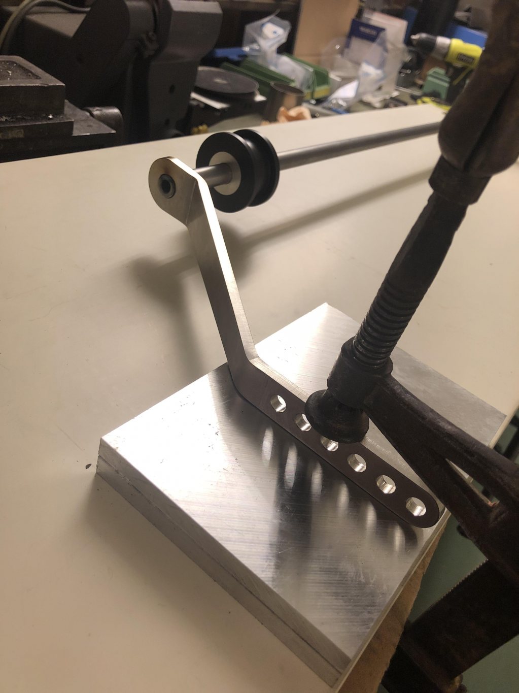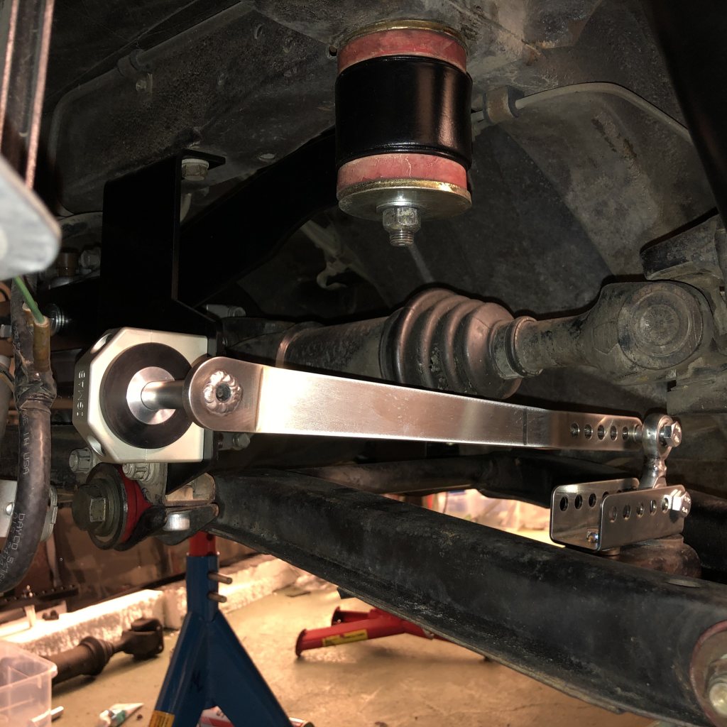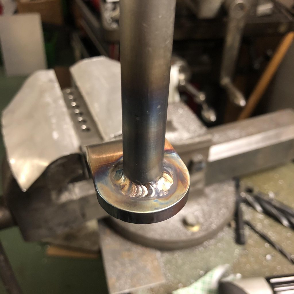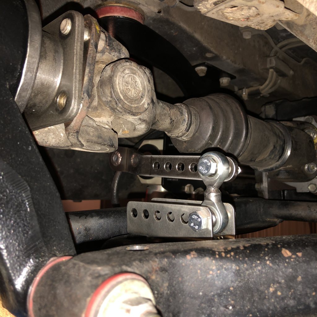 Bilen hade ingen krängare bak så jag fick tillverka nya fästen för den sen Gjorde jag ett par fästen att montera i länkarmen så jag fick en del justeringar. Även här stort tack till Fuling för beräkningar