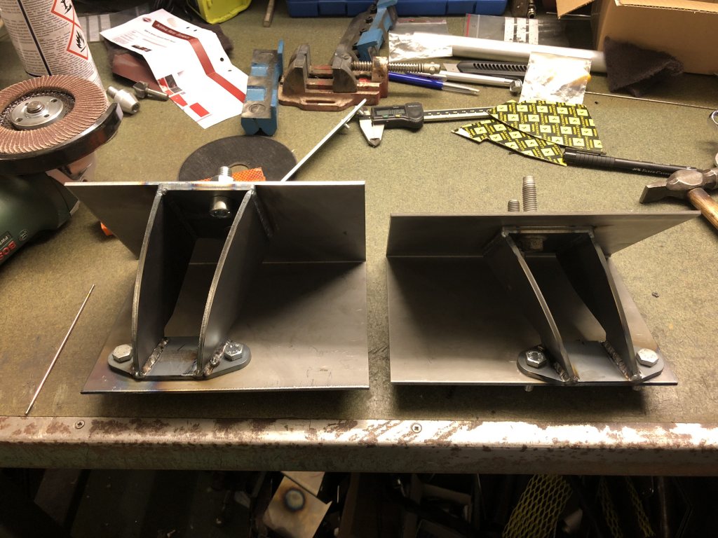 Och det kunde ja bara inte lämna orört. Efter lite mätande kom jag fram till att 40 mm tillbaka flytt blev lagom för att inte ska för stora problem. Efter det tar oljepumpen i styrväxeln och växelspaken missar hålet i mitt konsolen. jag gjorde två jigar och byggde två nya motorfästen 😊
