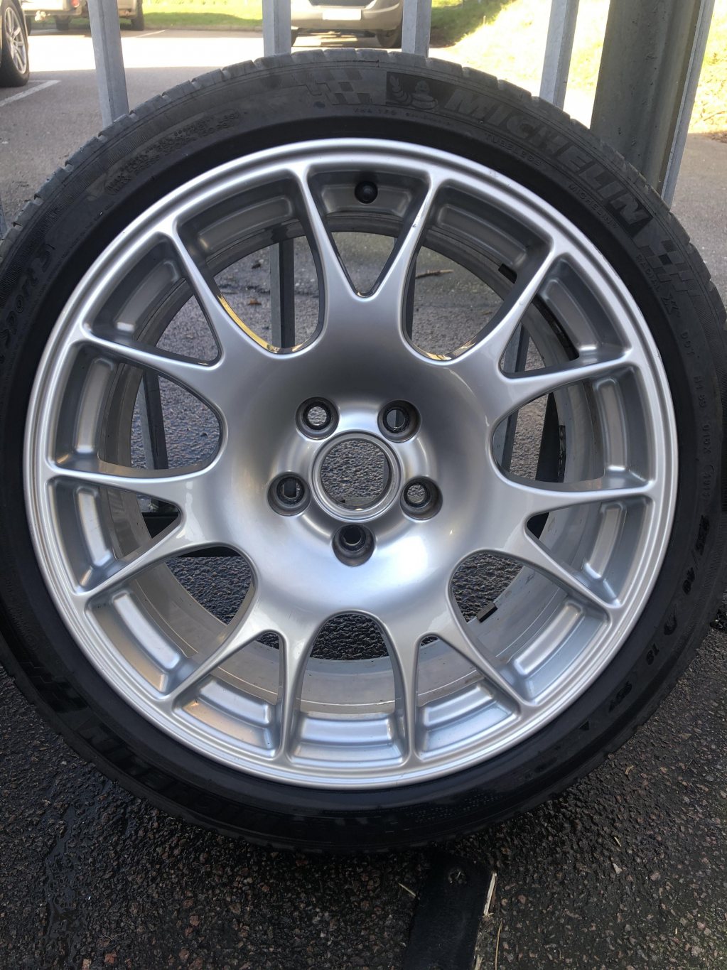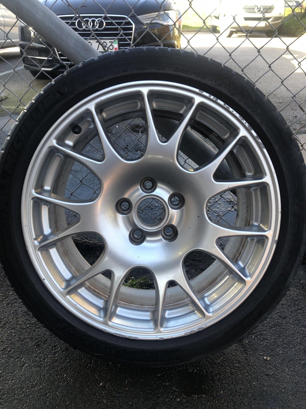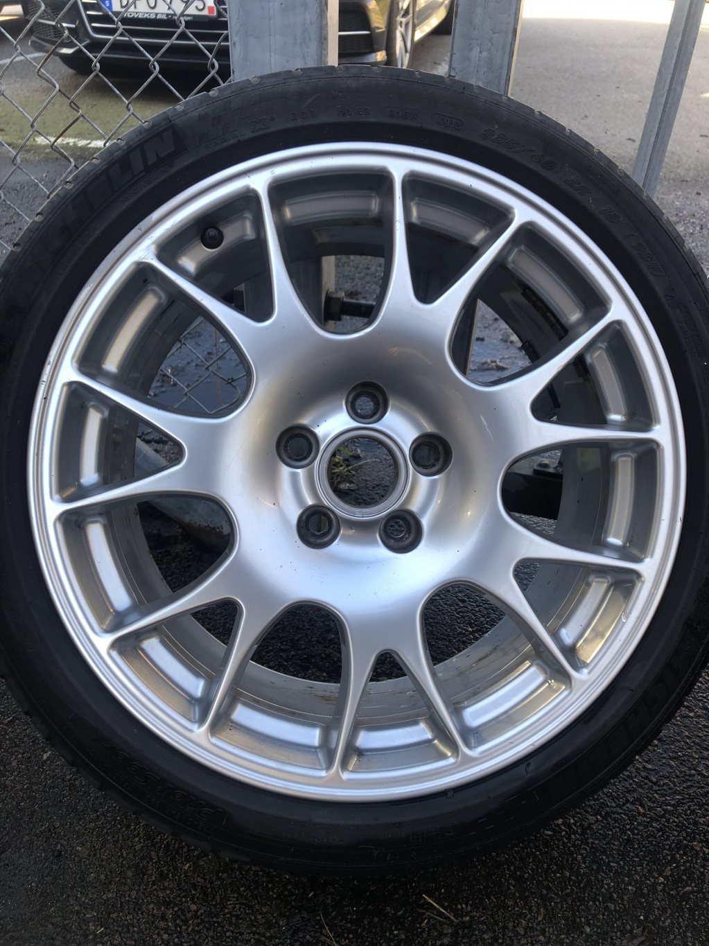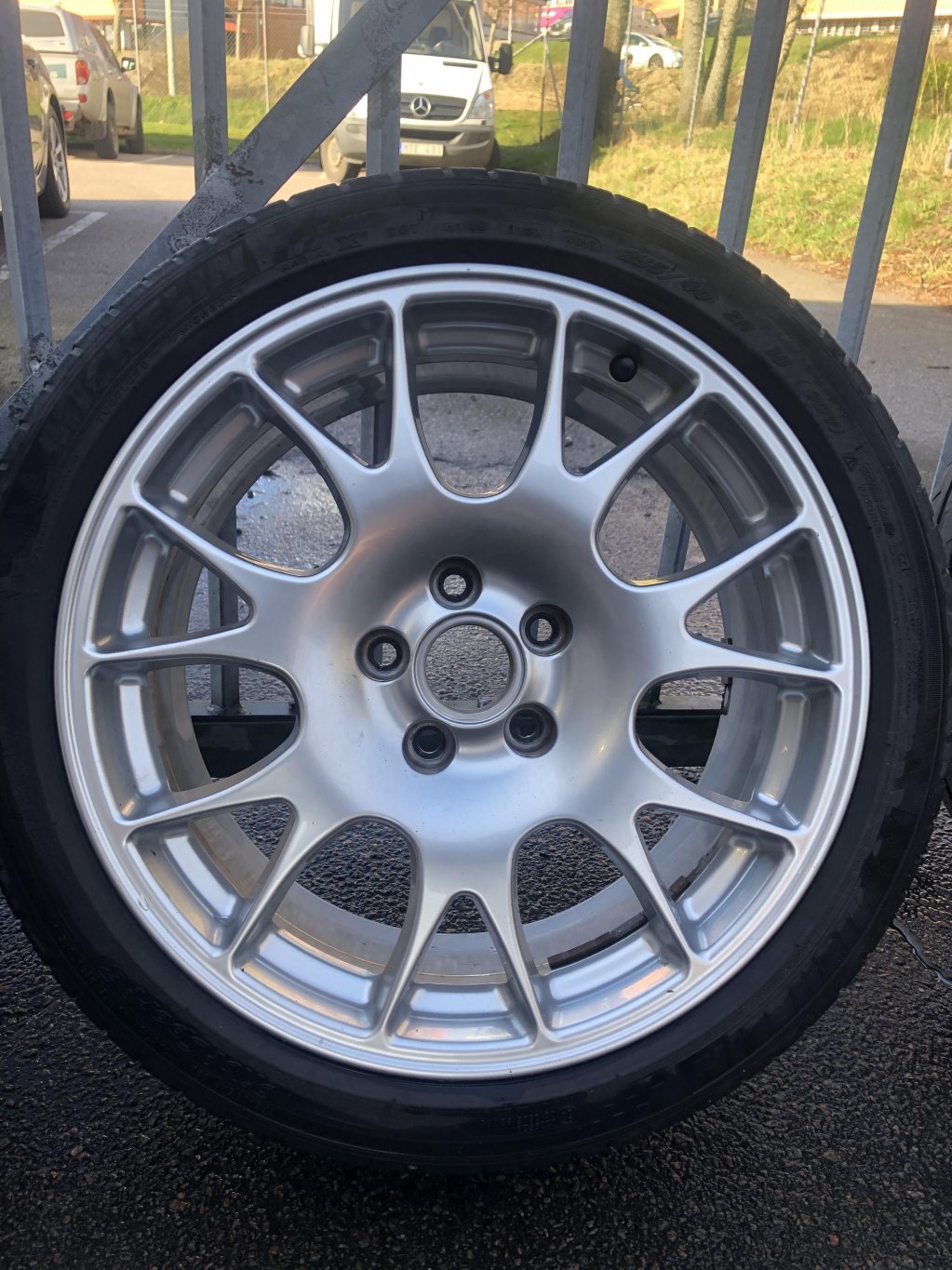 Fina 18" fälgar från BBS. Två toppenskick, en med ett litet litet skrap och en med lite skrap. Se bilderna. Kassa däck på. 8x18 et 43. 5/112 Har en uppsättning passande däck vid sidan av som kan köpas till. 4500kr Pris kan diskuteras vid riktigt snabb affär. Noll sju 05494575 Bra fälgar att antigen trycka på R däck på eller ha till vanliga VAG bilen.