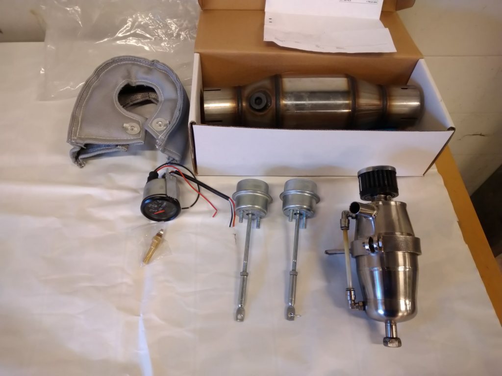 Hej Oanvänd SBF godkänd 100 cell racekatalysator 2.5 tum anslutningar. 1000kr Vevhus catch tank 350kr Wastegate klockor köpta hos bsr 0.6 bar och 1.0 bar 500kr för båda Oanvänd Biltema turbo mössa och fejk vdo mätare 200kr Köparen står för frakten Mvh Olof Pm eller maila oloffolkesson@outlook.com
