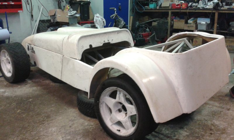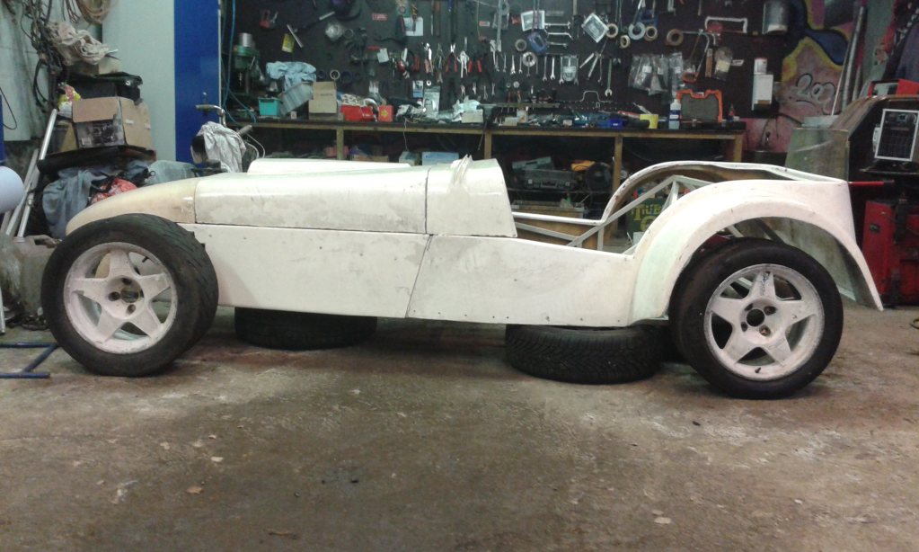 Jeg har et sæt glasfiber og en hjemmebygget ramme til en kitcar super 7 kopi. Ligger i Danmark ca 15 km fra Helsingor. Rammen skal laves færdig med hjulophæng osv. men den er lavet pænt.