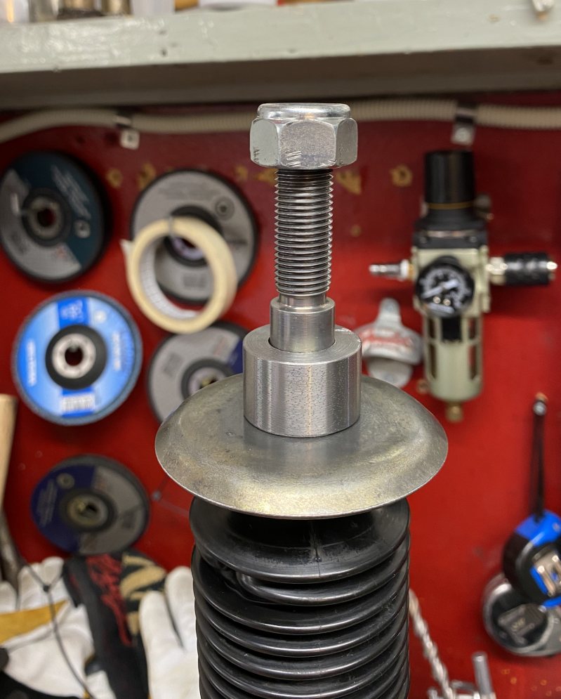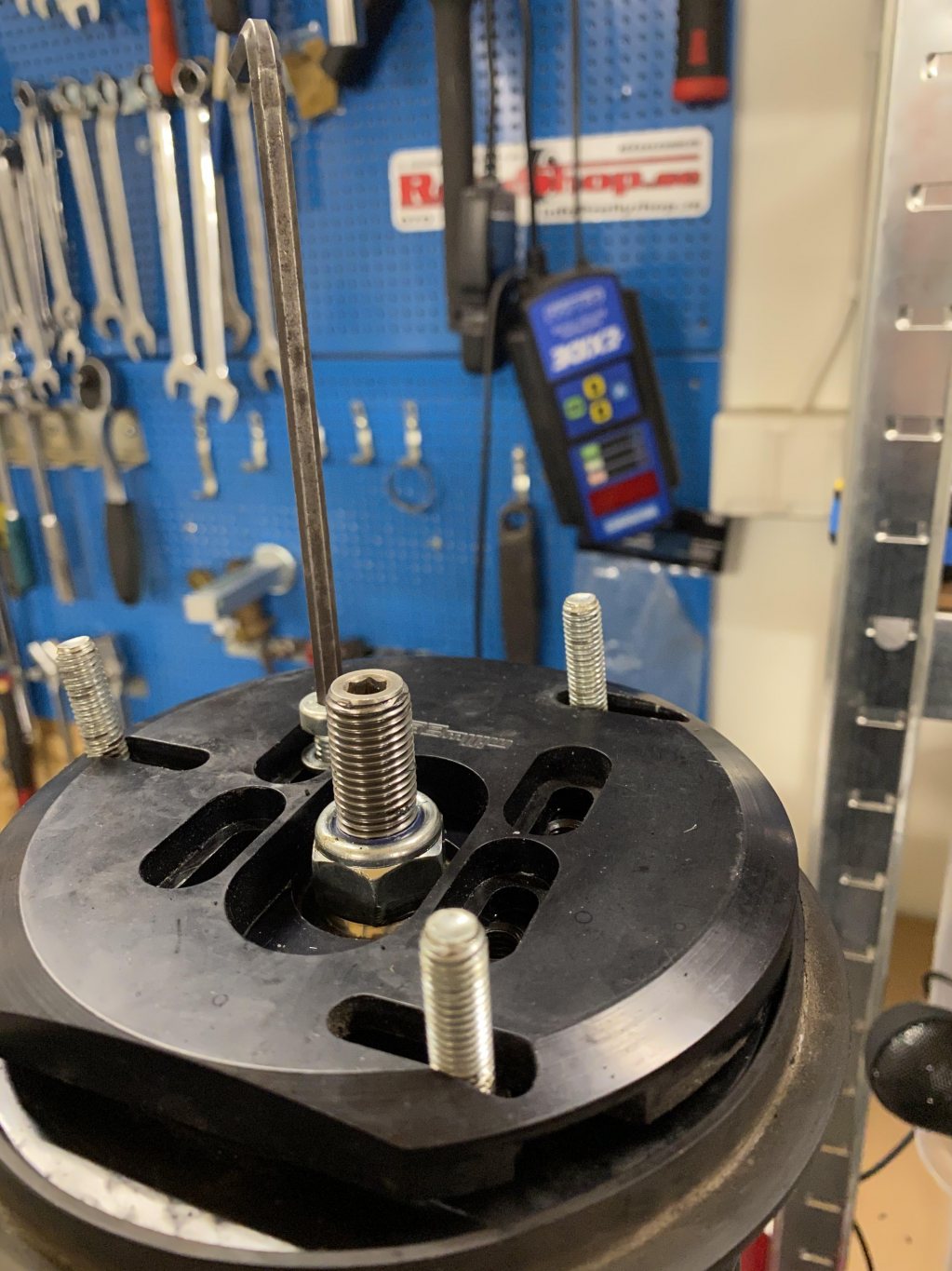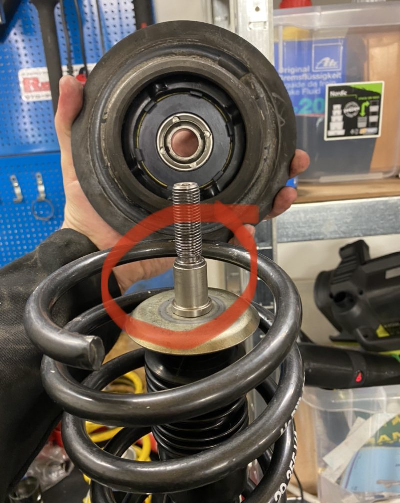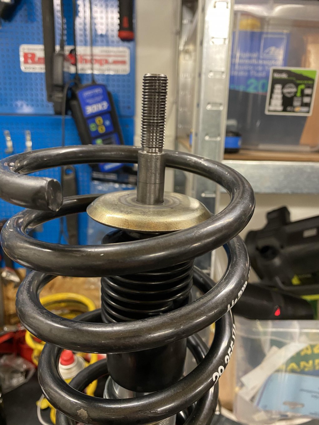 Sen att kolvstången sticker upp, ja plattorna är så låga jämfört med original. Bilen kommer bli superlåg, finns mellanlägg/ spacers man kan lägga imellan topplagringen och kaross.