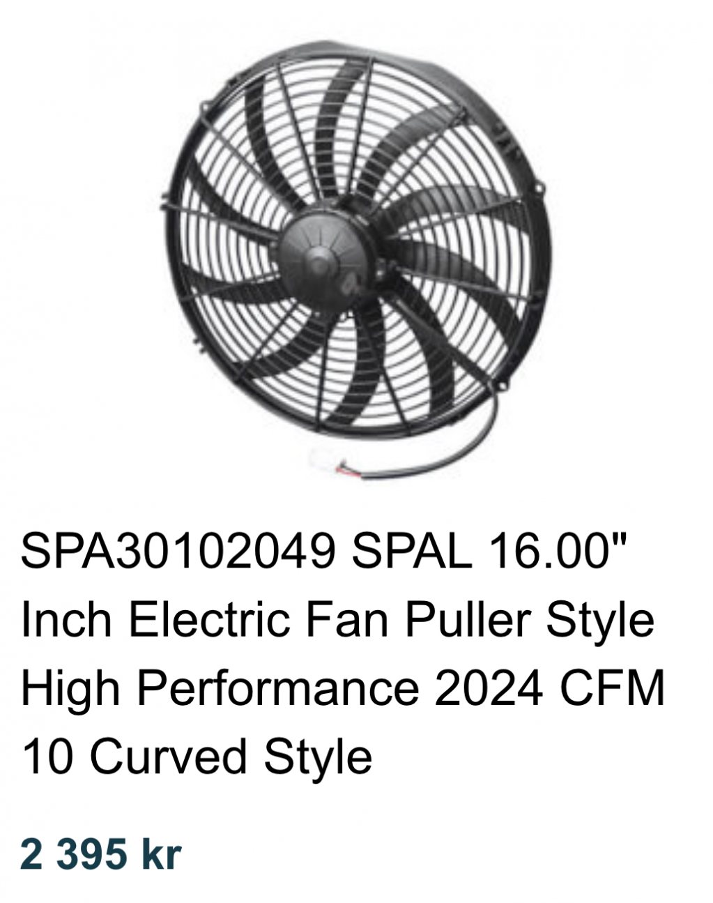 SPAL Kylarfläkt, helt ny och oanvänd. O414, 12V Pulling, curved Pris: SÅLD