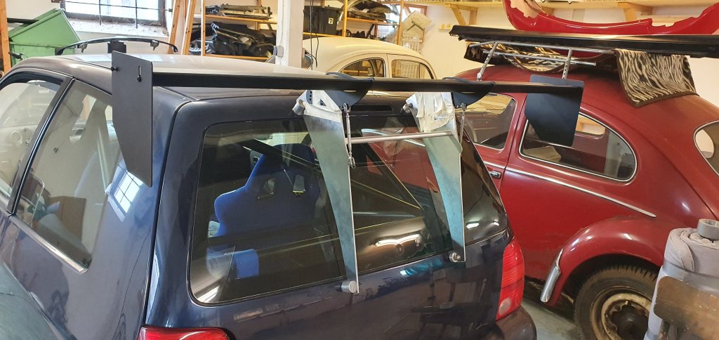 Då det står på min göra lista så finns det garanterat kunnigt folk här inne än att själv googla runt som ett fån. Det är en Vw lupo det handlar om. Front splitter är klar, inget att gå efter direkt utan bara vad som blev okej för ögonen typ. Otroligt lätt där bak så en vinge är ett måste Hittat en firma i england som gör komplett kit som är testad i olika vinklar för att få fram antal kg. Tänkte köpa en sådan men dom svarar ju fasen inte. https://bycdesigns.co.uk/your-track- Så tanken är att bygga en egen. Köpa färdigt vingplan blir enklast men vad välja? Justerbar är väl att föredra ,så jag kan testa olika vinklar Behöver tips vad jag bör täkna på. Att det blir en herejösses vinge spelar ingen roll, går bara bana ändå. _________________ Henrik Dahl  |