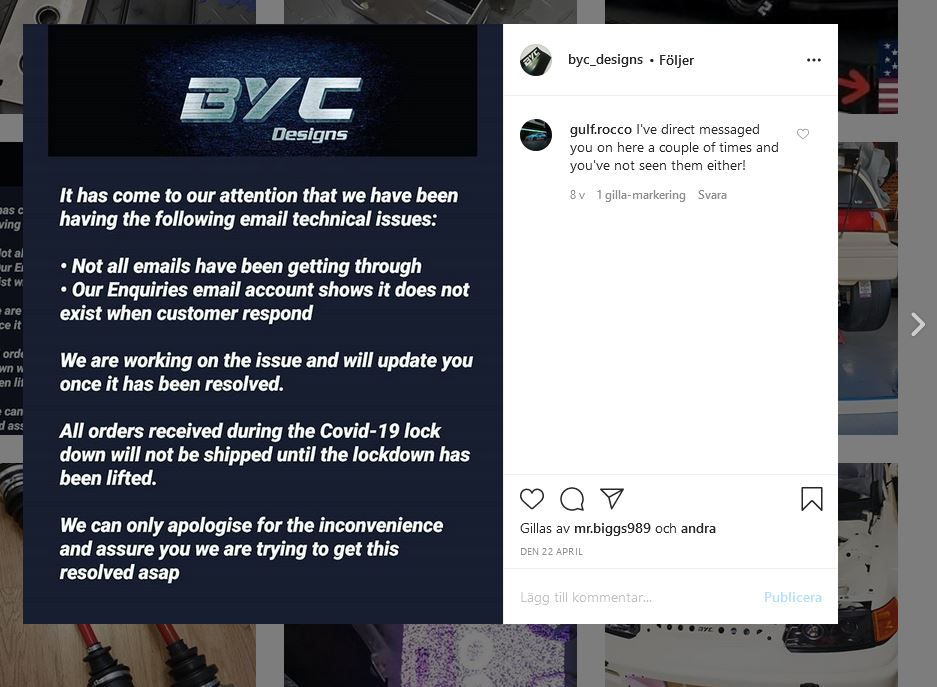 Köpt från honom också...fick grejer för ca 3veckor sedan till en Fiesta och en Focus..som sagt tog lite tid men det visste jag eftersom jag fått förklarat att han jobba i USA och grejerna fanns i England. Kanon grejer justerbar vinge i många olika lägen.