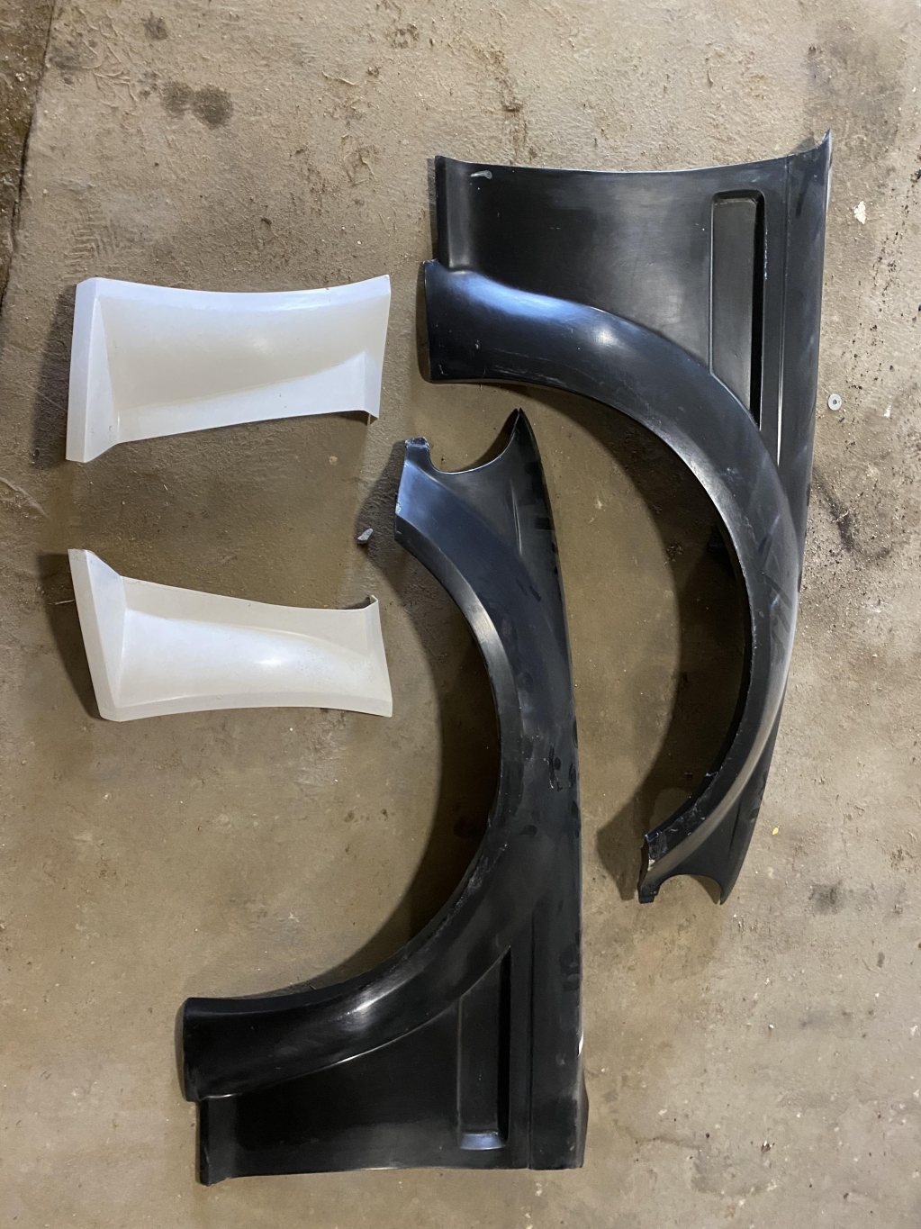 Hej Har ett par widebody glasfiber e46 framskärmar liggandes från ACM. Aldrig monterade. Även passbit som jag förstår de ska göra att dom passar med m3 frontspoiler