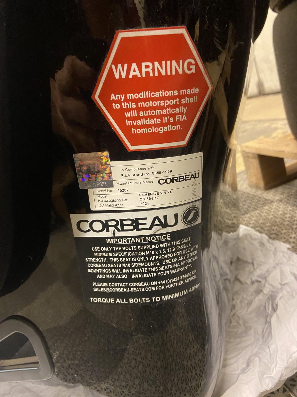 Har en Corbeau Revenge X i storlek XL till salu. Tillverkad 2018 och sparsamt använd så den är i nyskick, tyvärr passar den inte riktigt i min bil. Länk till tillverkaren: https://www.corbeau-seats.com/produc