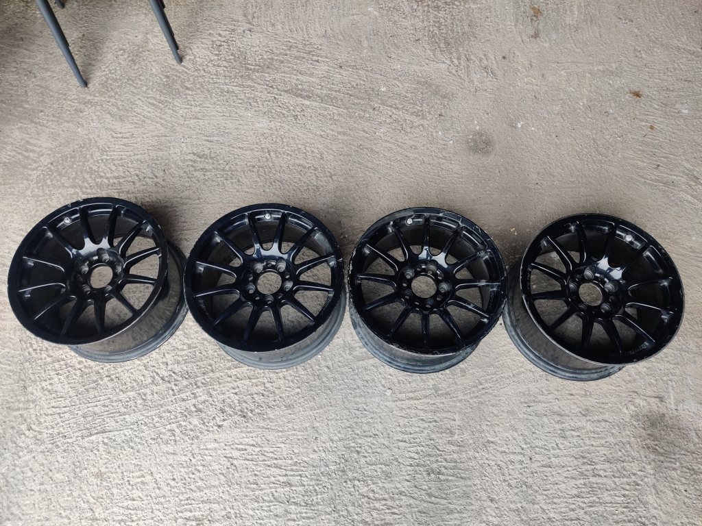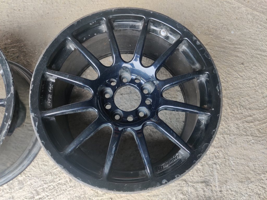 SÅLDA! Låter annonsen med bilder vara kvar för framtida försäljningar från er andra. De såldes för 2.500kr -------------------------------- Säljer en uppsättning Team Dynamics fälgar som jag har liggandes som suttit på en M3 E30. De har gått bana, så skicket i finish är därefter. Specs: Team Dynamics Pro Race (1.3? Flertal olika versioner av modellen så är osäker..) 17x9" ET: 33 Bultcirkel: 5x120 Gloss black Vikt ca. 9kg/st Skick: 2st bättre och 2st sämre. Funktion är det inget fel på, men lackskav finns. Se bilder. Nypriset ligger på runt 10k internationellt. Pris: 2.500kr eller bud