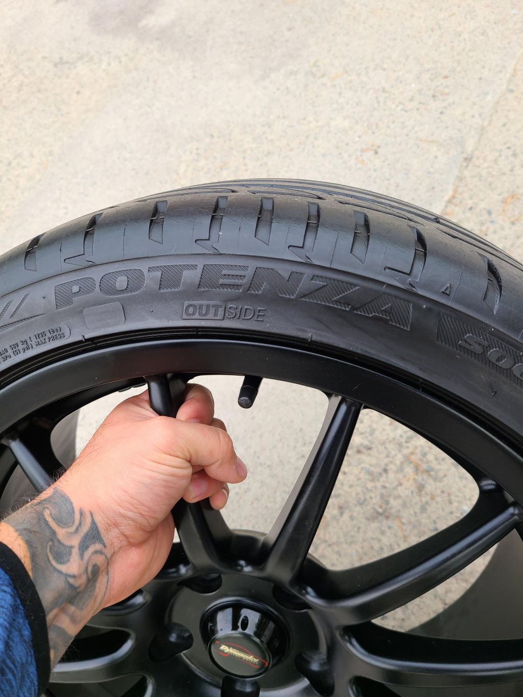 Fälgarna är svarta och i väldigt bra skick. Dessa sitter perfekt i linje med en original S2000 tex.