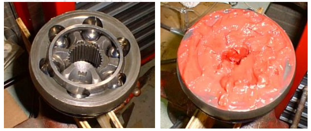 Du skall trycka in fettet mellan kulorna, i värsta fall så kommer knuten gå åt helvete om du inte ser till att kulorna/banorna är insmorda innan du kör. Man knäcker lätt en ny knut på 100m om man gör helt fel och att inte smörja ordentligt är ett steg i den riktningen. På välkänd drivknutstillverkares fabrik så har de speciella munstycken per knutstorlek/utförande som ser till att trycka in fett mellan kulorna vid tillverkning. _________________ /Mats Strandberg onemanracing.com BMW 330i -05 |