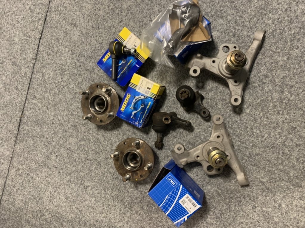 Säljer ett par hjulspindlar (Fram) från Mazda Miata MX-5 nb Hjulnav, begagnade nedre spindelleder, nya övre från BMW och nya styrleder medföljer Sålt