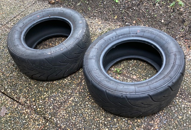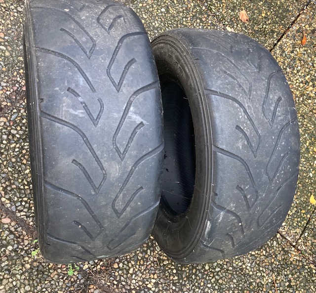 Få mil, mest körda på sprint och track days 2009-2016. Därefter legat och vilat mörkt och svalt på en hylla i garaget. Hittade dem" häromdagen då höströjningen började! Så klassiska däck, men säkert bra busdäck ännu! Och synd bara kasta dom!