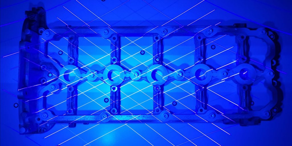 Scannern är en laserscanner som använder markörer för att positionera sig, därför måste detta klistras på detaljen som skall scannas.