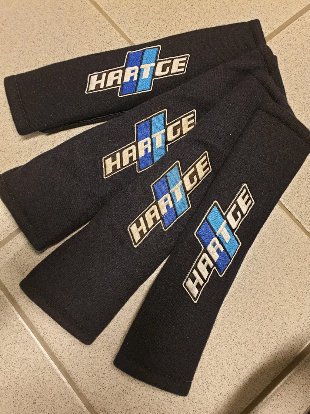 4 st. bältespads med OEM Hartge tyglogo påsydda på svarta pads.