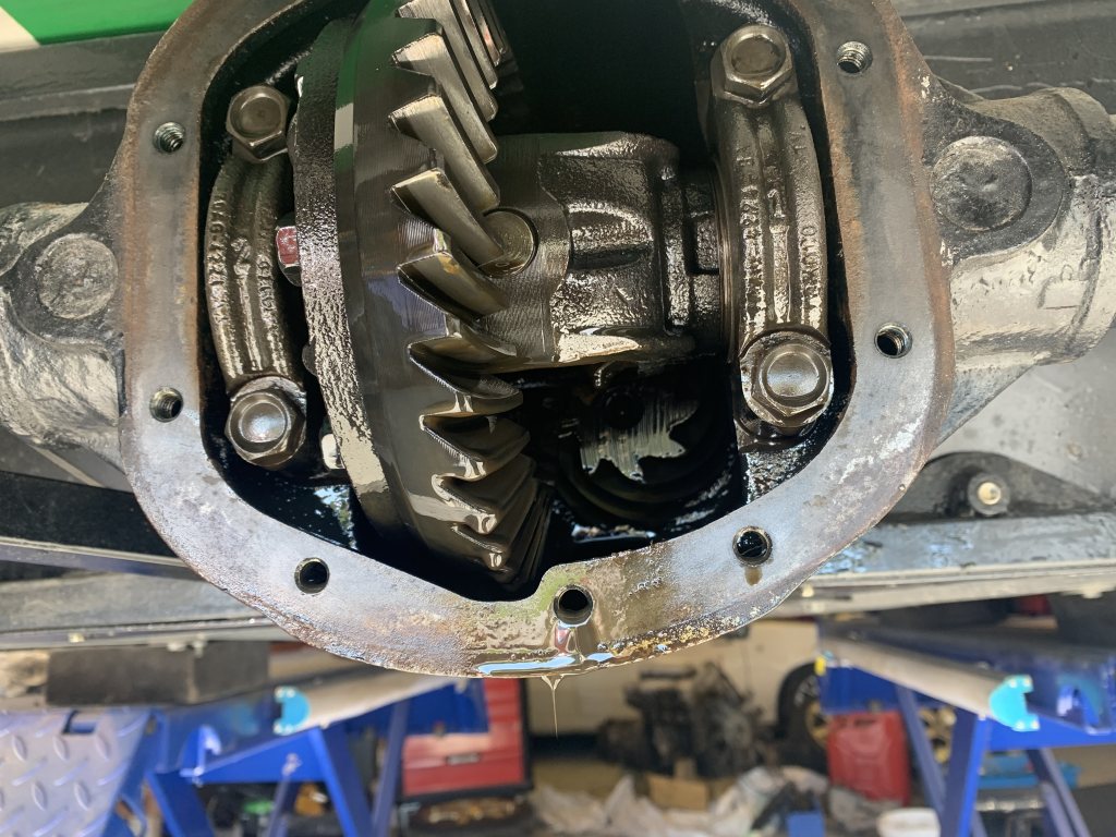 Tog av locket till diffhuset och tog lite bilder. Olja såg vattenblandad ut hur nu det kan bli så? Troligen inte bytt sedan hedenhös. Kan pluppen på sista bilden vara avluftning möjligen? Det är svårt att återge med bilderna men oljan ser vattenblandad ut. Tänkte köpa någon billig olja och låta snurra runt 10 min på lyften och sedan byta direkt till den rekommenderade. Den ljusbruna färgen på olja är ju kvar på alla drev inne i diffen och kan ju knappast vara bra.