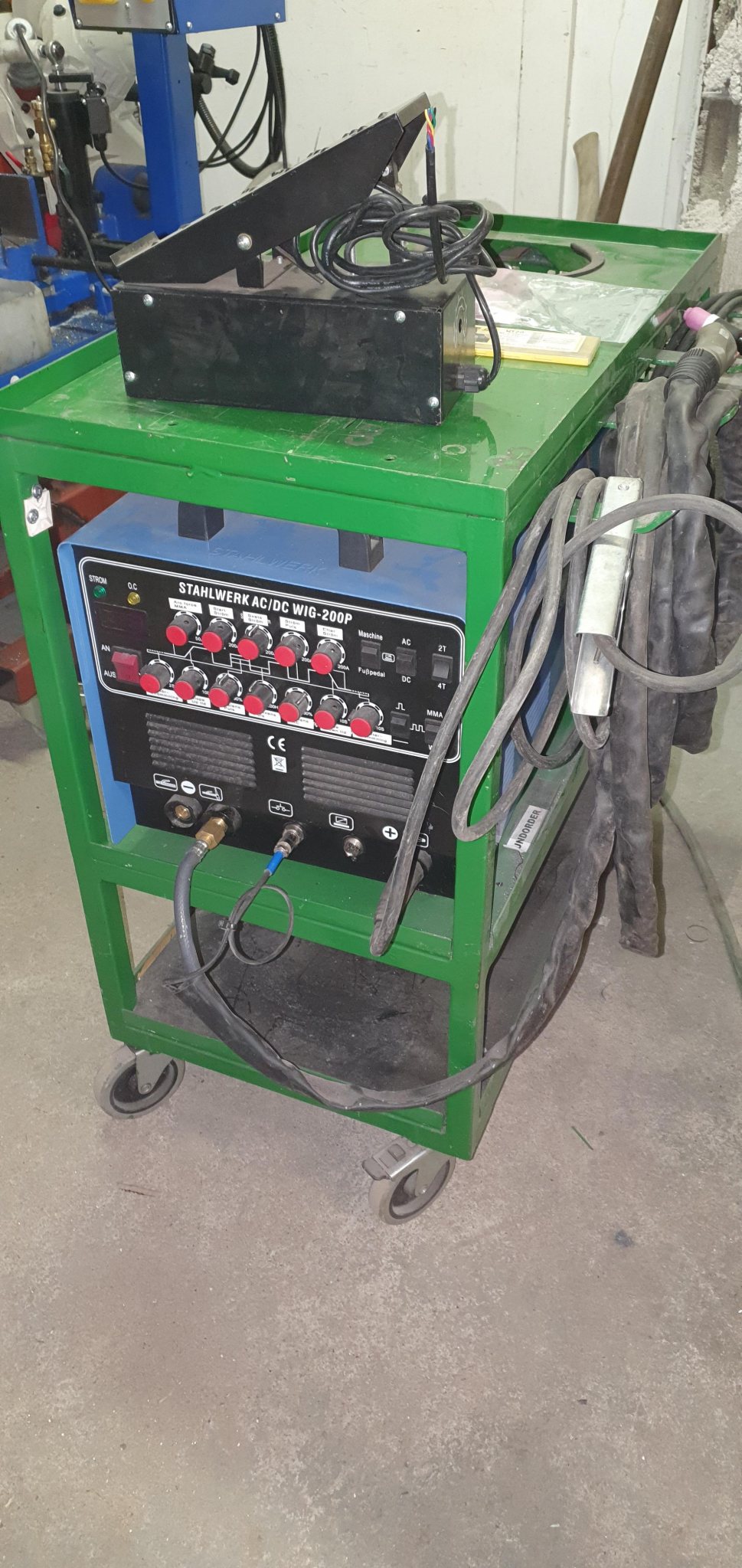 Hej. Säljer min AC/DC tig som jag inte använder längre. Fullt fungerande, svetsvagn medföljer och lite svetstillbehör och wolframelektroder. 1,6 och 2,4 Röda (DC) och gröna (AC) och Guld (AC/DC) Svetsvagnen har Eluttag. Tyvärr är pedalen trasig vridpotarna har gått sönder finns på ELFA för någon hundring. OBS!! Ingen argon-tub eller regulator medföljer. Pris: 6000kr Mvh Hans Sjögren 0700814344 Huddinge.