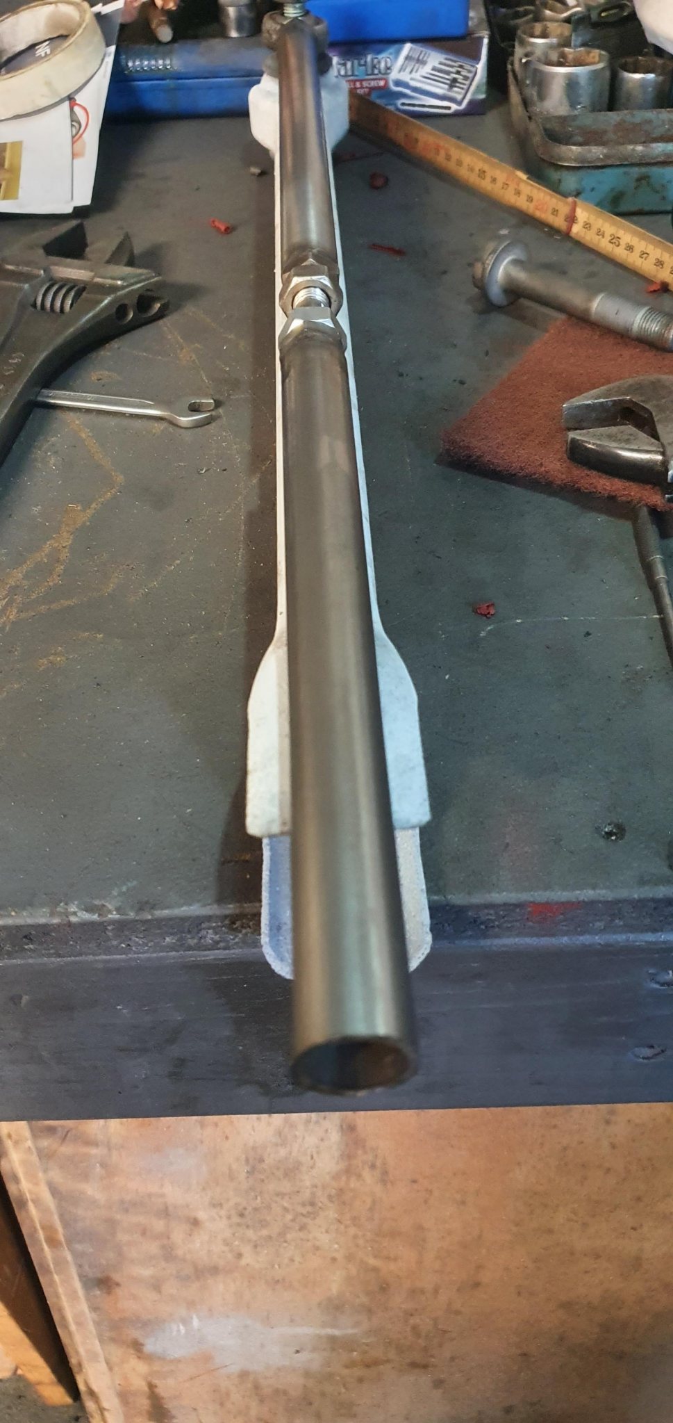 Kan du inte göra justeringen med höger vänster gängade uniballs i varje ända? Se till att fräsa in ett lagom nyckel grepp i pluggarna du svetsar på ändarna bara! Sitter den armen uppe eller nere i upphängning? _________________ Pontus Fyhr |