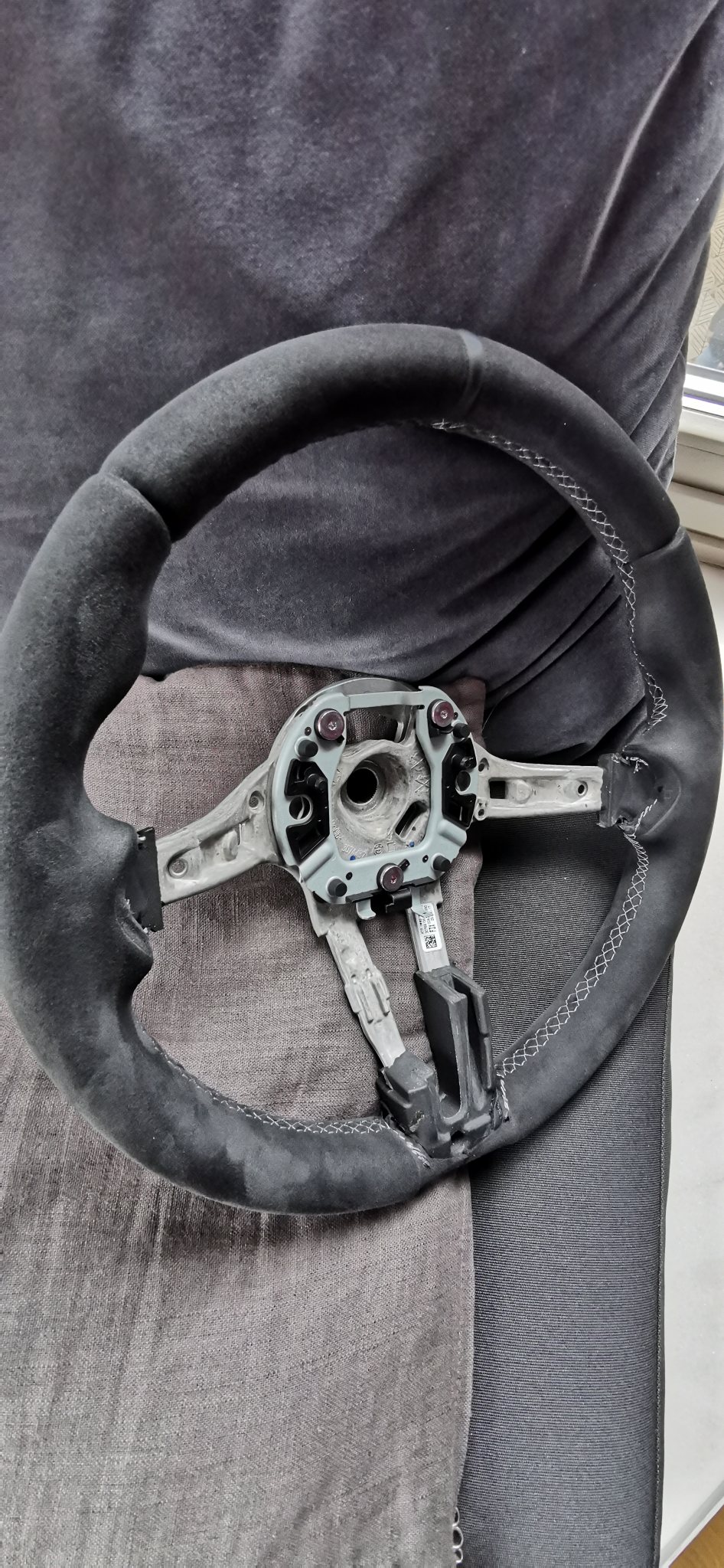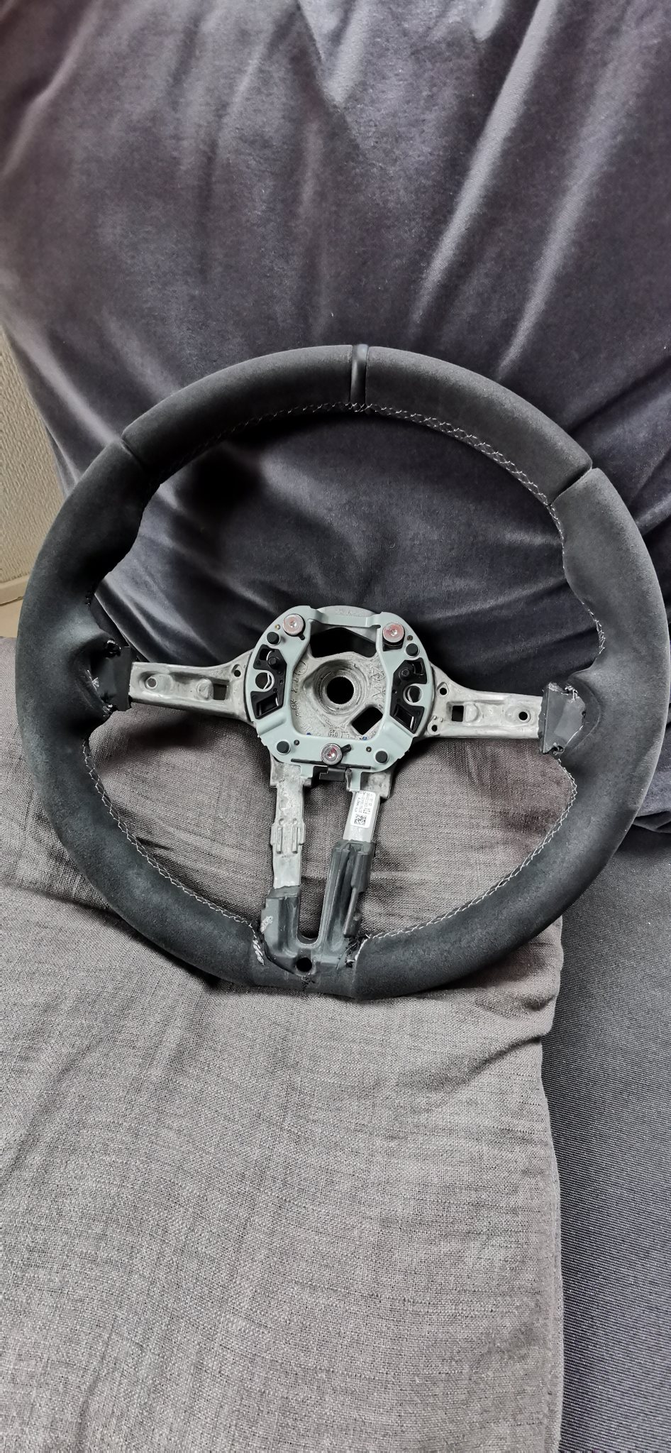 Bmw orginalratt omklädd I alcantara. Mörk alcantara, gråa sömmar, svart markering klockan 12 på ratten. Alcantaran I nyskick och ordentligt rengjord. Ej rattvärme, har du rattvärme gör det bara att du blir av med den funktionen iofs. Airbag, knappsats och kåpor flyttas över från din egna ratt. Byte av ratt är enkelt, tar under en timme utan någon erfarenhet alls. Passar Bmw m2 m3 m4 f8x Eventuellt f20 och f30 med. Ludvig Håkansson Helsingborg 0733966609 4500kr