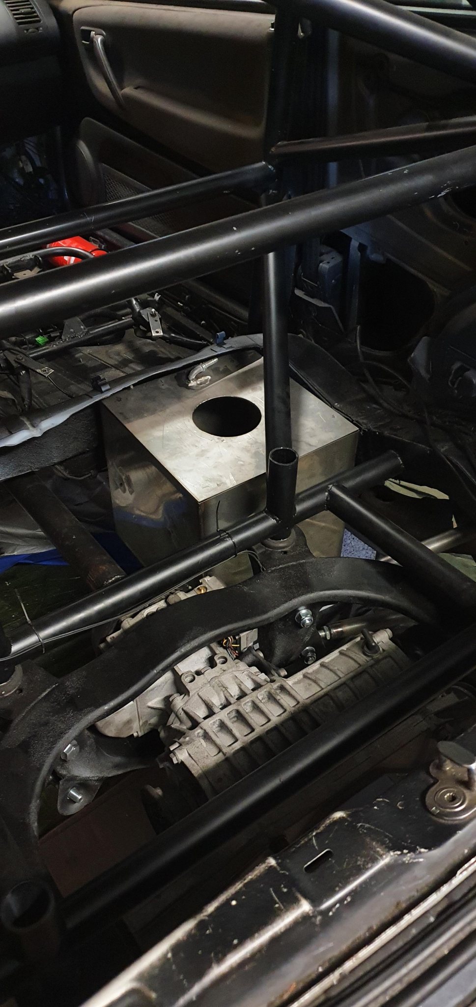 Kommer bli ett simplare golv över allt sedan så tanken och bakvagnen kommer bli gömd men påfyllningsröret kommer hamna inne i bilen så att säga. Ingen sfro eller annan besiktning kommer göras, bara köra på trackdays.