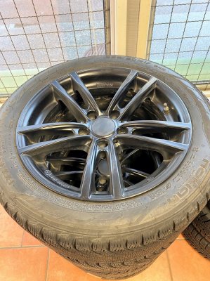 Ny bil, mina förra vinterdäck passar inte. Nokian / Hakkapeliitta (3 säsonger) dubbfria "Run flat" 225/50 på RIAL X10 (757) mattsvarta 7,5" x 17" (5x120, centrumhål 72,6, ET36) TPMS monterade Mönsterdjup 6,0 mm enligt däckhotell Suttit på min BMW 3-serie (F30), men passar på många fler, se: https://www.bultcirkel.org/falgguide/?bultar=5&bultcirkel=120/ Pris: 5 000,00 Klicka för större bilder!