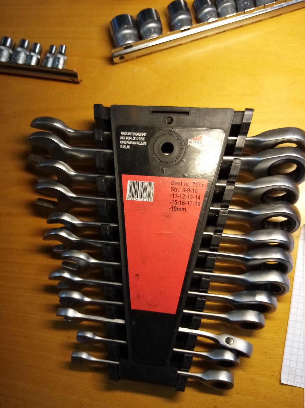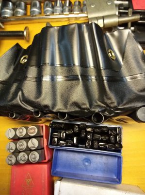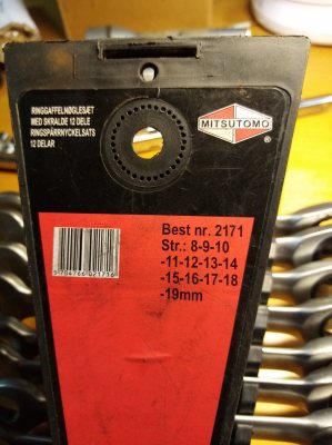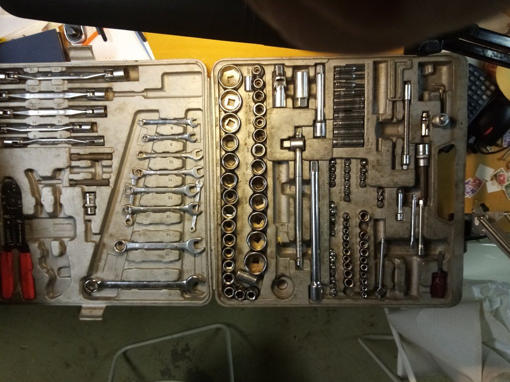 En del verktyg saknas ex spärrnycklar 2 gaffel ringnycklar några små tumhylsor någon tång se bild