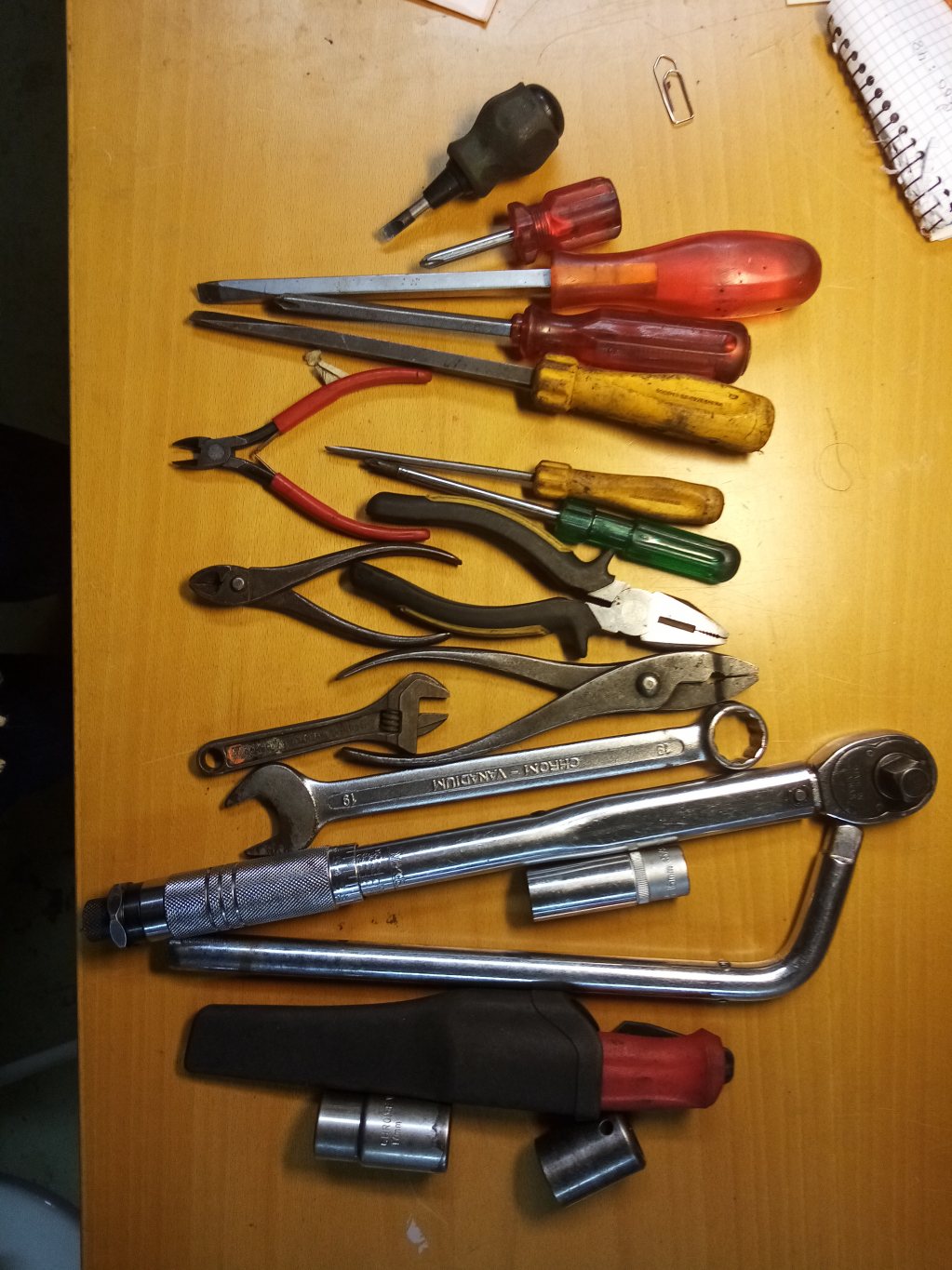 Blandade verktyg bla tändstiftshylsor, momentnyckel, skruvmejslar, tänger mm 150kr eller gott bud