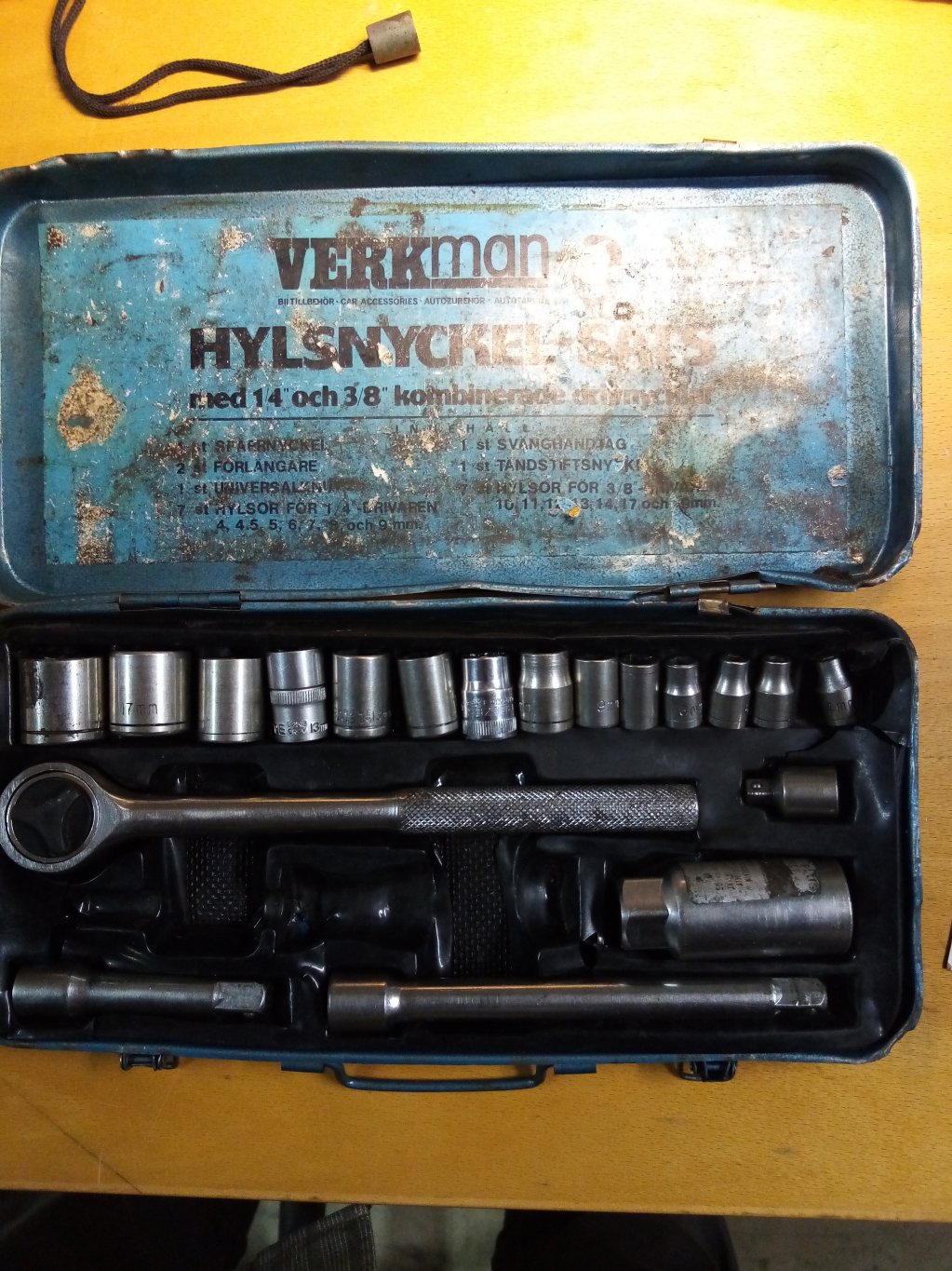 Hylssats Verkman 1/4" och 3/8" i lits defekt plåtlåda 120kr