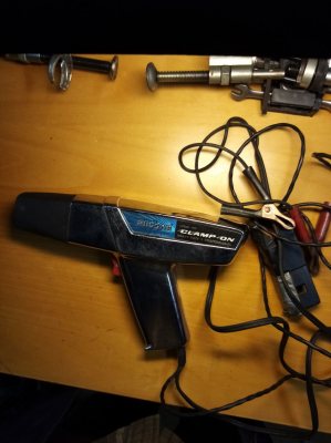 Tändinställningslampa gammal men fungerande modell, kan användas som stroboskop för att se saker som vibrerar kränger ex generator 75kr
