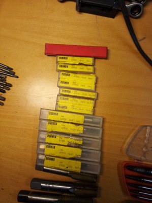 Gängtappar nya och begagnade mm, tum, fingängat, normalgängat mest tyska högkvallitet 200kr