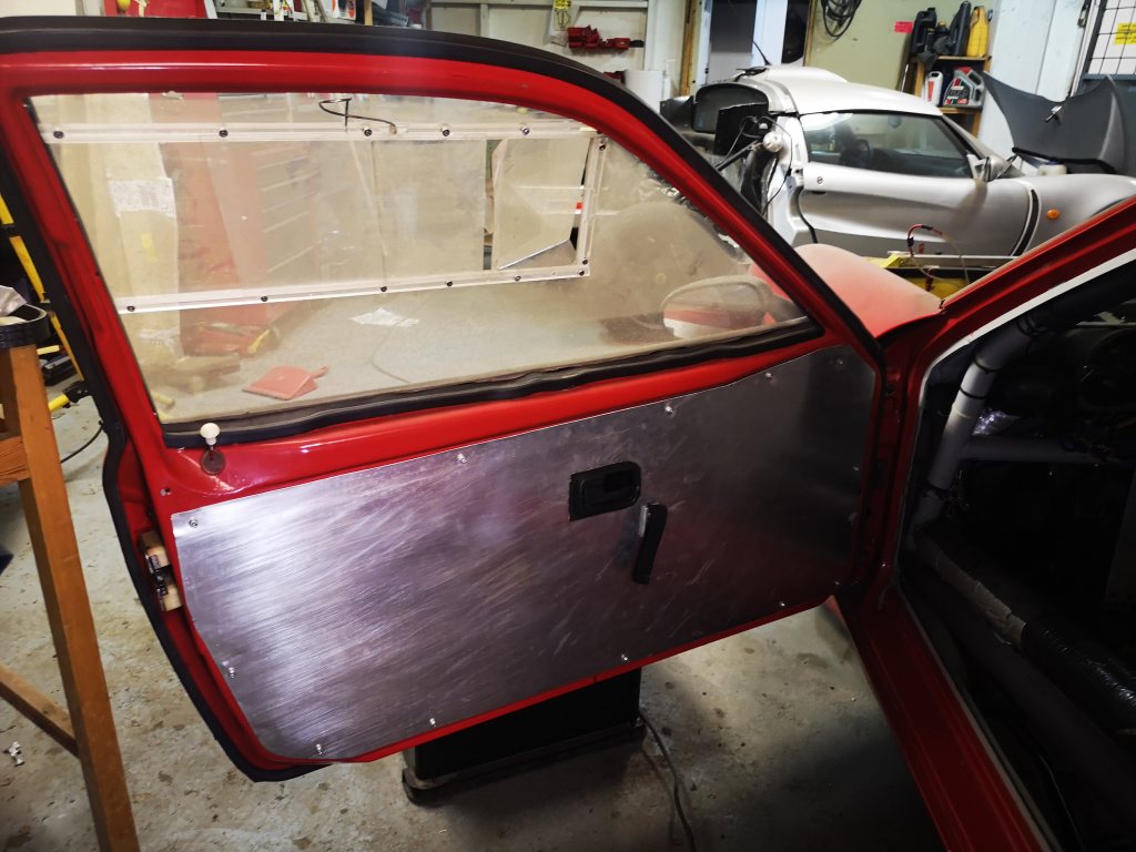 Bilen är rejält lättad till under 1000kg med plastrutor (även bak), plasthuv, plastskärmar.