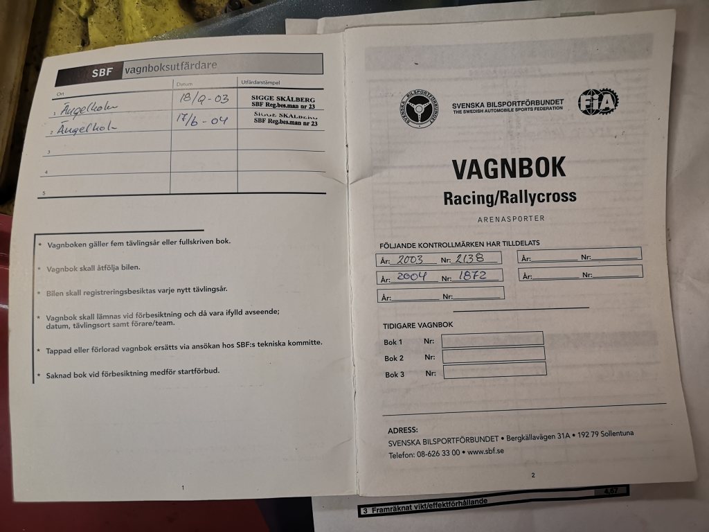 Alla plåtdelar, inredning mm. som tagits bort för lättning finns kvar om man vill köra den i en klass där det krävs att dessa delar är kvar