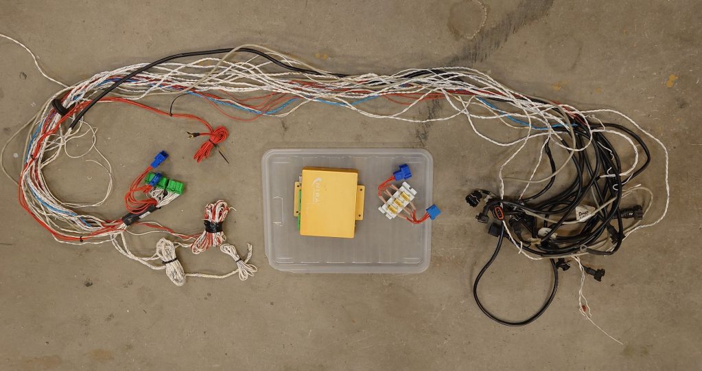 Nira i3 med härva kontakterad för Volvo B230. De kablar som inte har brukats har bara buntats ihop, ej klippts eller kortats. En del av härvan saknar hölje p.g.a trång genomföring i torpeden, annars har den inte gått att få ur. Spridarmotstånd, Bosch MAP/MAT sensor och avgastempgivare medföljer. Pris: 3500kr