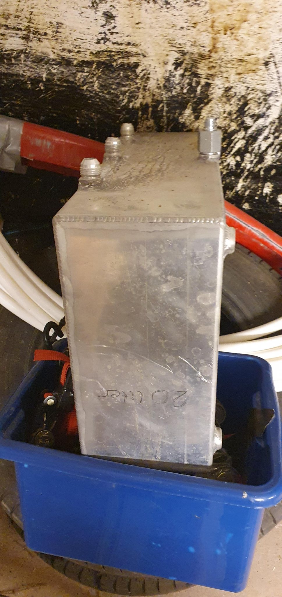 Denna är byggd i alu med svetsade AN-kopplingar rymmer +20 liter