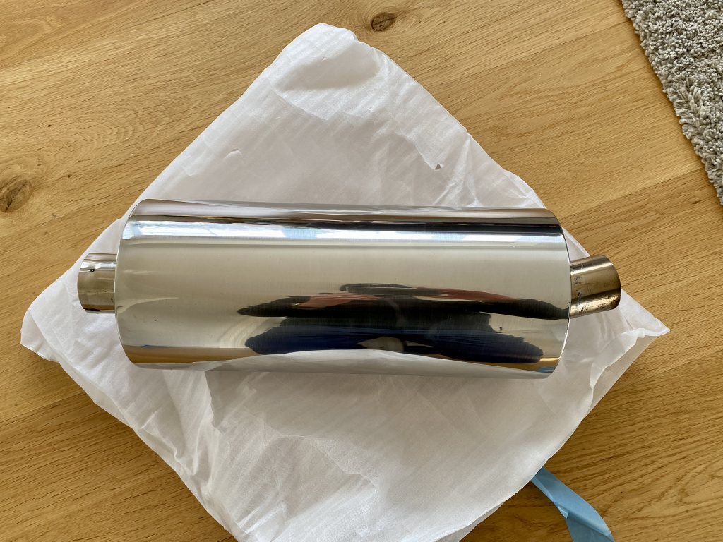 Säljer min trackday-ljuddämpare (extradämpare) i rostfritt. Dämparkroppen är 150 mm i diameter och 320 mm lång. Helt ny. Endast monterad och provkörd. Perfekt som komplement på Super seven-bilar. Muffen på ena sidan är 2" invändigt och på andra 2" utvändigt för att kunna kopplas in i serie. Dessutom är ena muffen svetsad med 15 graders vinkel för att passa perfekt längs sidan. Se bild. Finns i Göteborg. Pris: 600 kr