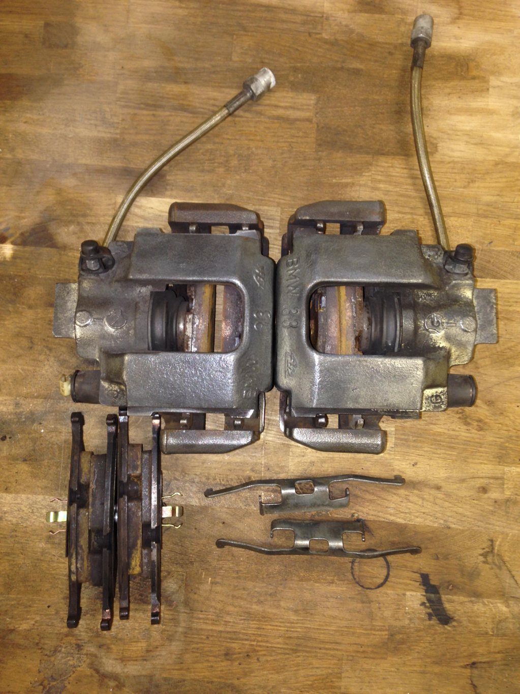 Ate bromsok till BMW E30 Inkl begagnade Pagid RS-19 belägg och stålomspunna slangar Reservdelsnummer för oken är: 34 21 1 153 243 (vänster) 34 21 1 153 244 (höger) Passar till 316 316i 318i 318is 320i 320is 323i 324d 324td 325e 325i 325ix 1500kr