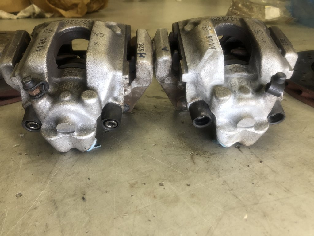 SÅLDA BMW M3 E46 original bromsok och skivor bak. Stålomspunna slangar. Skapligt nya damasker och packningar. Följer med ett knippe belägg, Carbotech, Pagid, OEM. 1500kr
