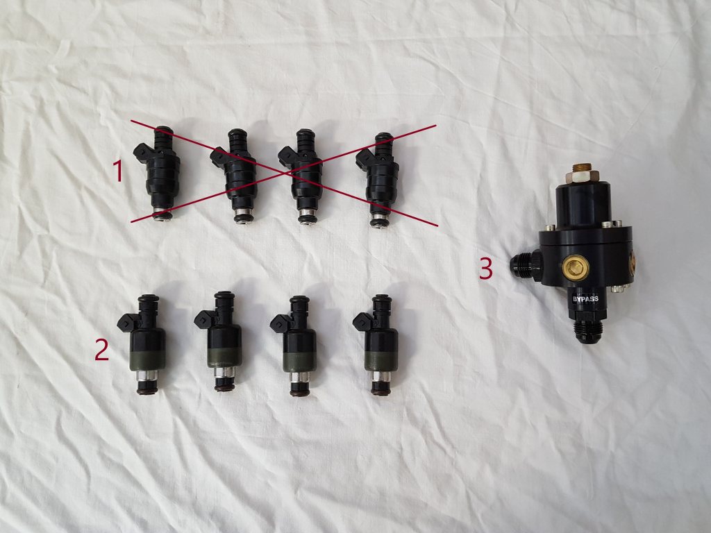 Samtliga delar är några år gamla, men aldrig kommit till användning (blivit liggande, kan behöva en översyn). Finns i Göteborg (Hisingen) Svar här/PM eller till p_d_e(at)bredband.net Nr1 spridare 846cc Sålda Nr2 spridare 400cc 4st Delphi 400cc högohm. Resistans: 12 Ohm / Hög ohm Kontakt: Standard Bosch EV1 Minitimer Sprutbild - Enkel spray kona. Pris: 1200 Nr3 Bränsletryckregulator Accel 74567 bränsletrycksregulator. AN8 in/ut Pris: 1000