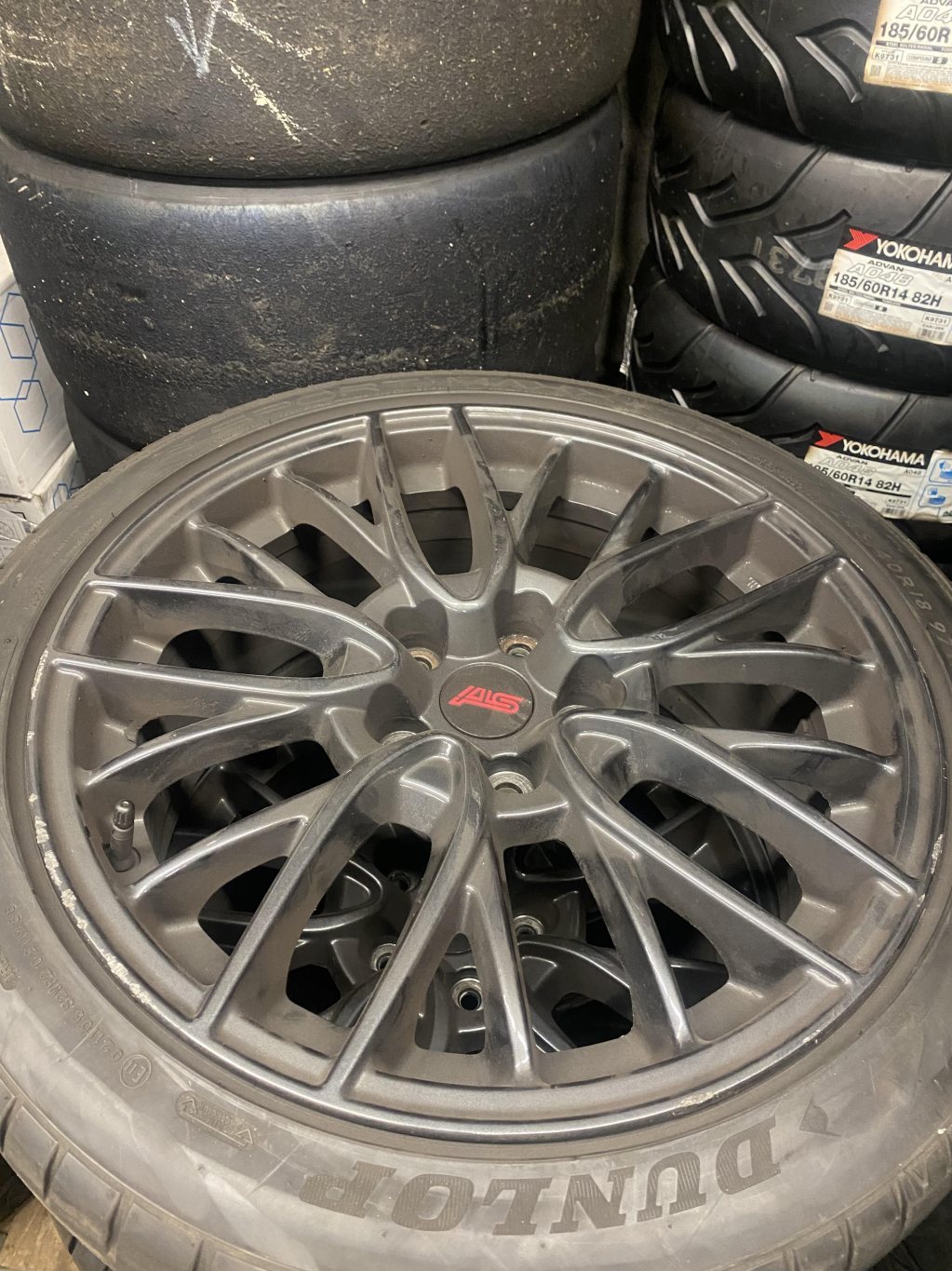 Original Subaru WRX STI hjul med hyfsade Dunlop 245/40-18.