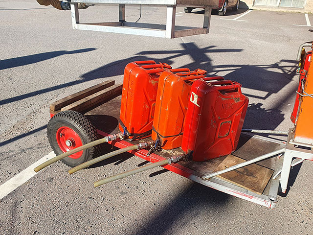 Snabbtankanläggning 120 liter för långlopp, racing, MSLS, STEC, ERCUP, NSHC ATL kopplingar, monterad på vagn med lyft för tankning och jordad anslutning, flamrör, brandsläckare m.m. Pris 5000 kr -- Finns även 3 st. jeepdunkar med modifiering för snabb tankning Pris 500 kr --
