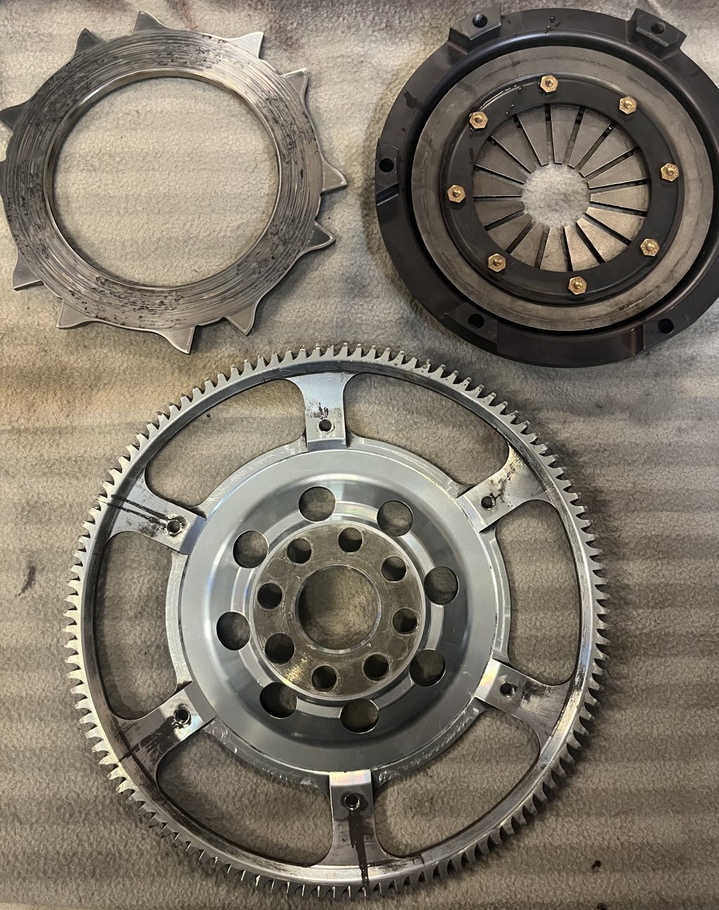 5kg Svänghjul och quarter master koppling säljes. Ingen lamell ingår.