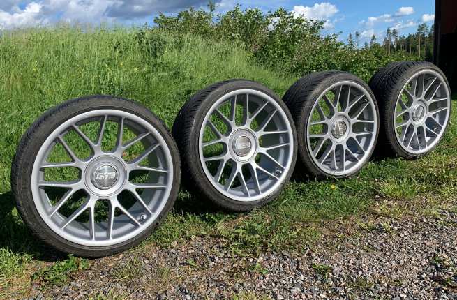 Hej! Säljer en staggered uppsättning av BBS RC 300 och 303. Lätta smidda fälgar framtagna av BBS speciellt för bmw e36, e46 men passar såklart bra överlag på många bmw med 5/120 bultcirkel. Motsvarigheten kanske många här känner till är Apex Arc8. De står på Nankang NS Ultra sport med slimmad profil 215-35-18 som gör att de går på e36/e46 utan problem utan spacers. Går att gå lite bredare och tjockare utan problem om man så vill också. Med däcken väger de endast 17kg st! Fälgarna finns i Arvika men kan eventuellt ordna frakt enligt överenskommelse eller mötas upp en bit ifrån. 72.6 navcentrum 5/120 bultcirkel Et 13 bak Et 38 fram 8 1/2 x 18" runtom Pris 11.000 Välkommen att höra av dig. Jag nås lättast på 0704967917.