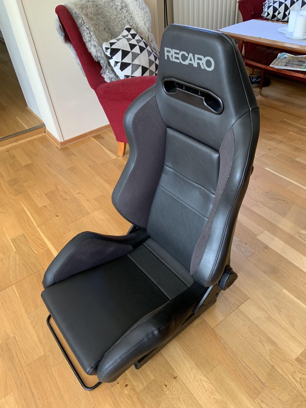 SÅLD En st vänsterstol i superfint skick. Den är klädd i kombinationen svart konstläder och svart "Saturn"-tyg. Artikelnummer 295.07.0572. Inget synligt slitage och absolut inga revor eller hål. Medföljer gör även det skjutbara underredet (sliders). Denna 90-talsklassiker har Recaro nyligen återupptagit tillverkningen av. https://cdn.recaro-automotive.com/fi Så det går alltså att köpa en till likadan stol om du skulle önska det På denna sajt kan man speca den exakta kombinationen som då kostar 1425 EUR https://www.baanvelgen.com/en/recaro Det finns till och med färdiga modellspecifika underreden/montagesatser till många olika bilar att köpa nytt. Se nederdelen av denna sida https://shopeu.recaro-automotive.com Stolen är samma, eller en mkt snarlik version av Speedstolen som bland annat satt i BMW E30 M3 Sport Evolution samt versioner av Honda Type R och Mitsubishi Evo (x) Pris 4000 kr eller bästa bud. Hämtas i Kävlinge (utanför Lund) i Skåne. Vincent Pihlström noll-sju-noll 7385184