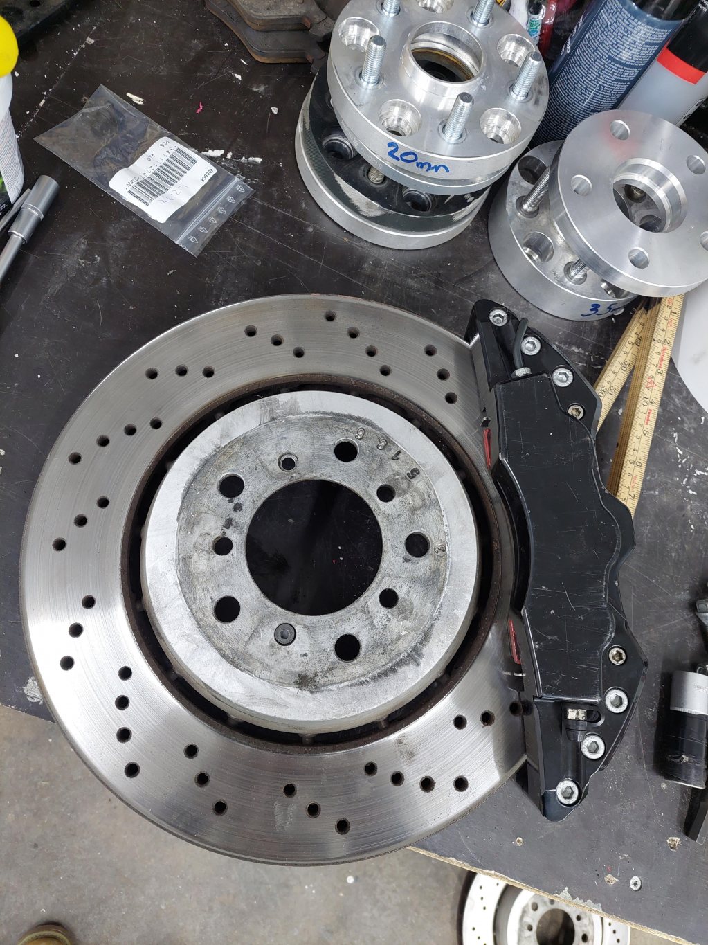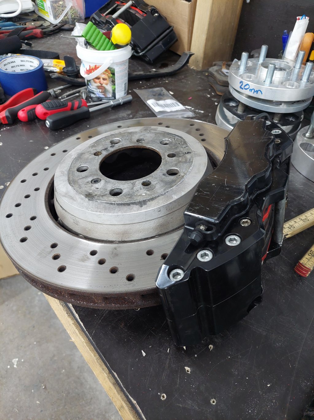 Till e46 m3 från början men ombyggt för att passa e46 330 spindel med csl skivor.
