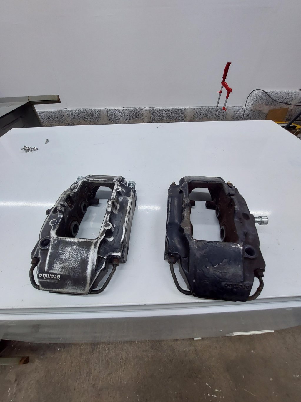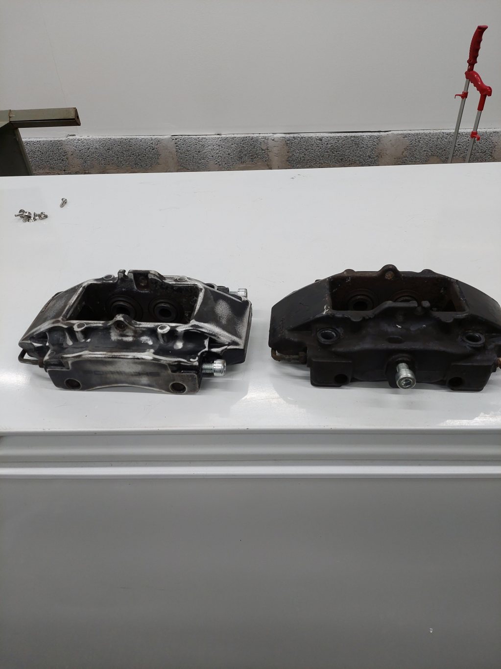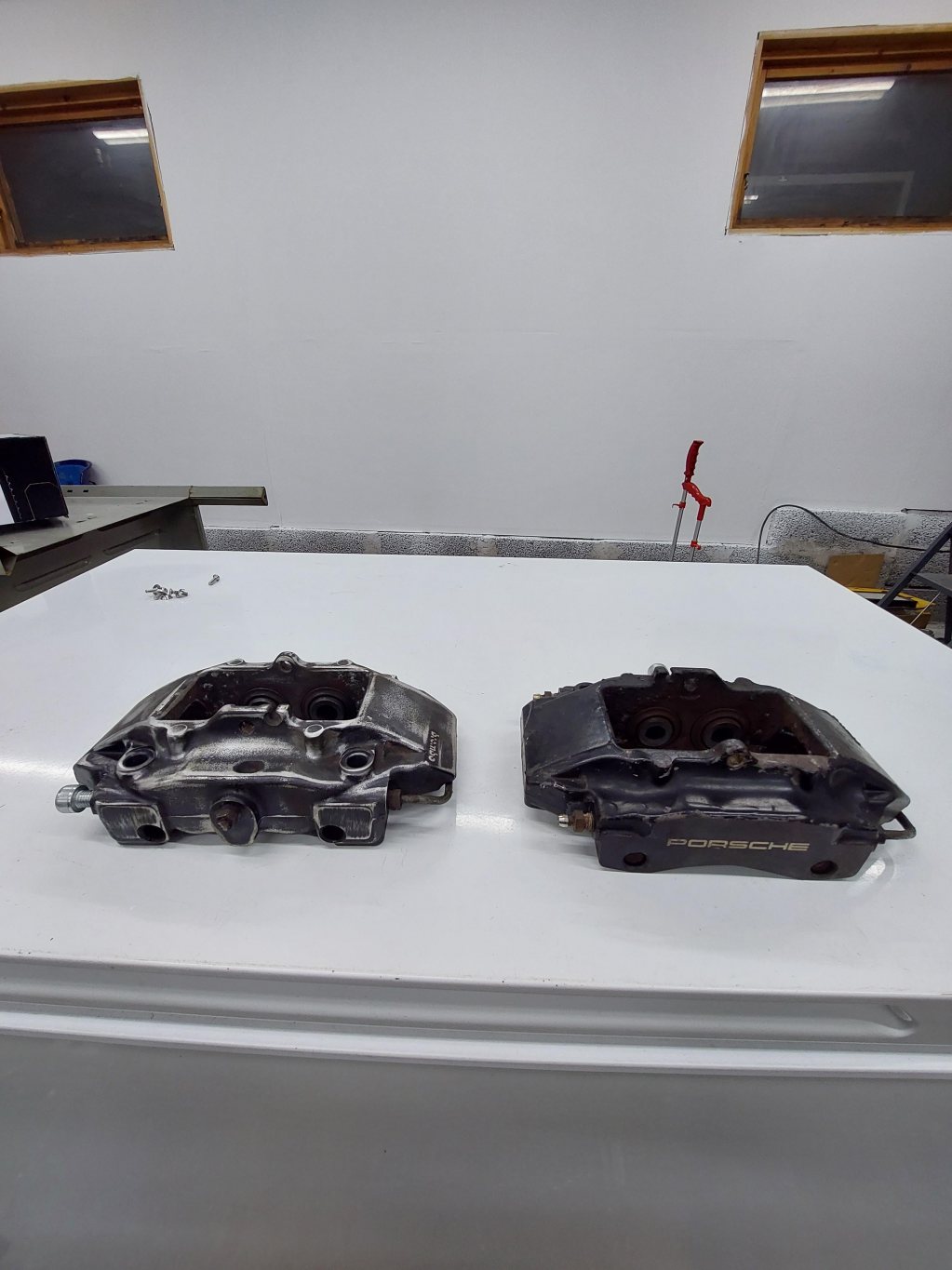 Porsche 996 bakre bromsok inkl hållare för att montera Dem på e46. Dem är i renoverings behov, har börjat slipat ner ena oket. Har även nya dekaler till dem Pris 4000kr