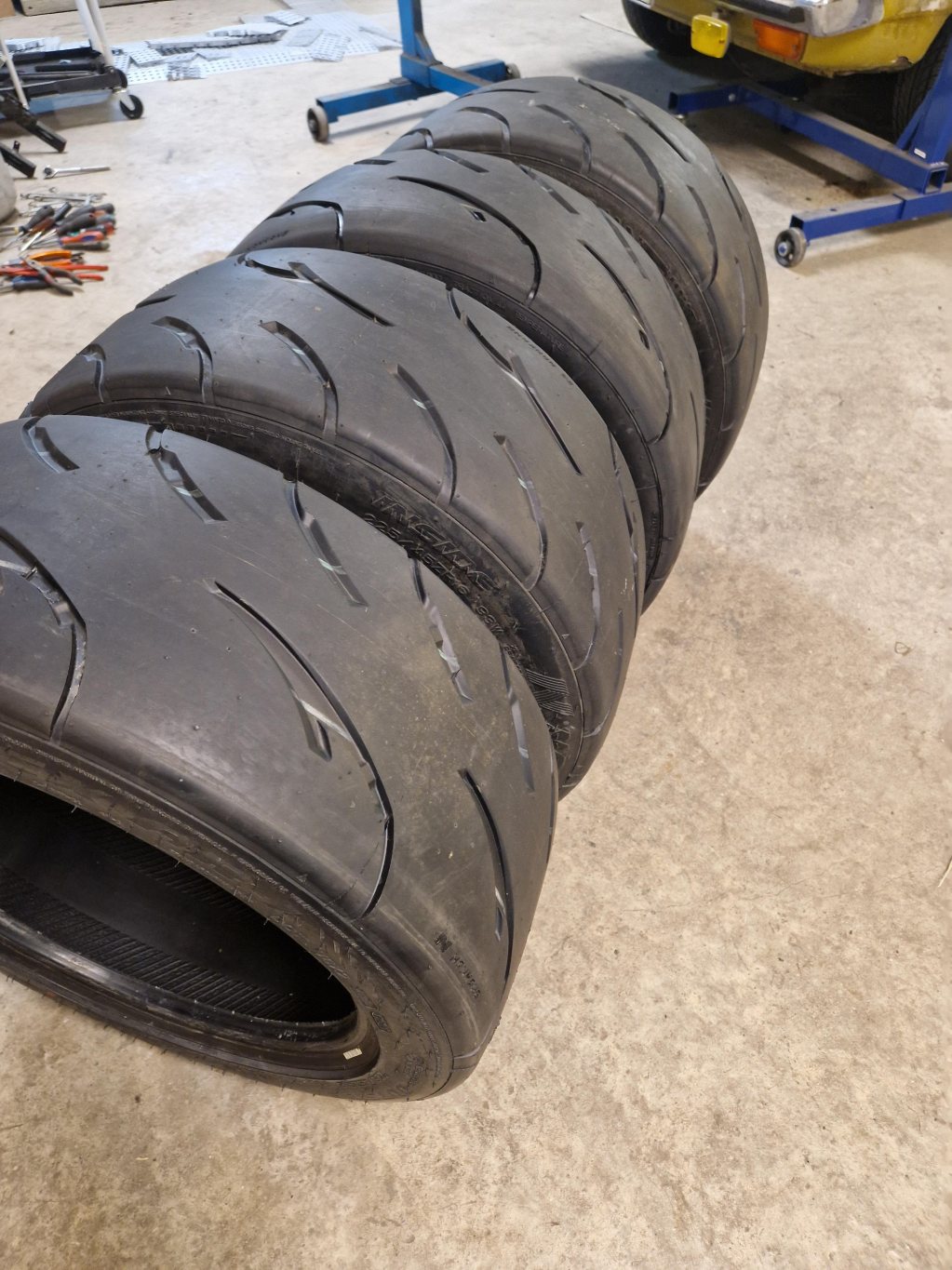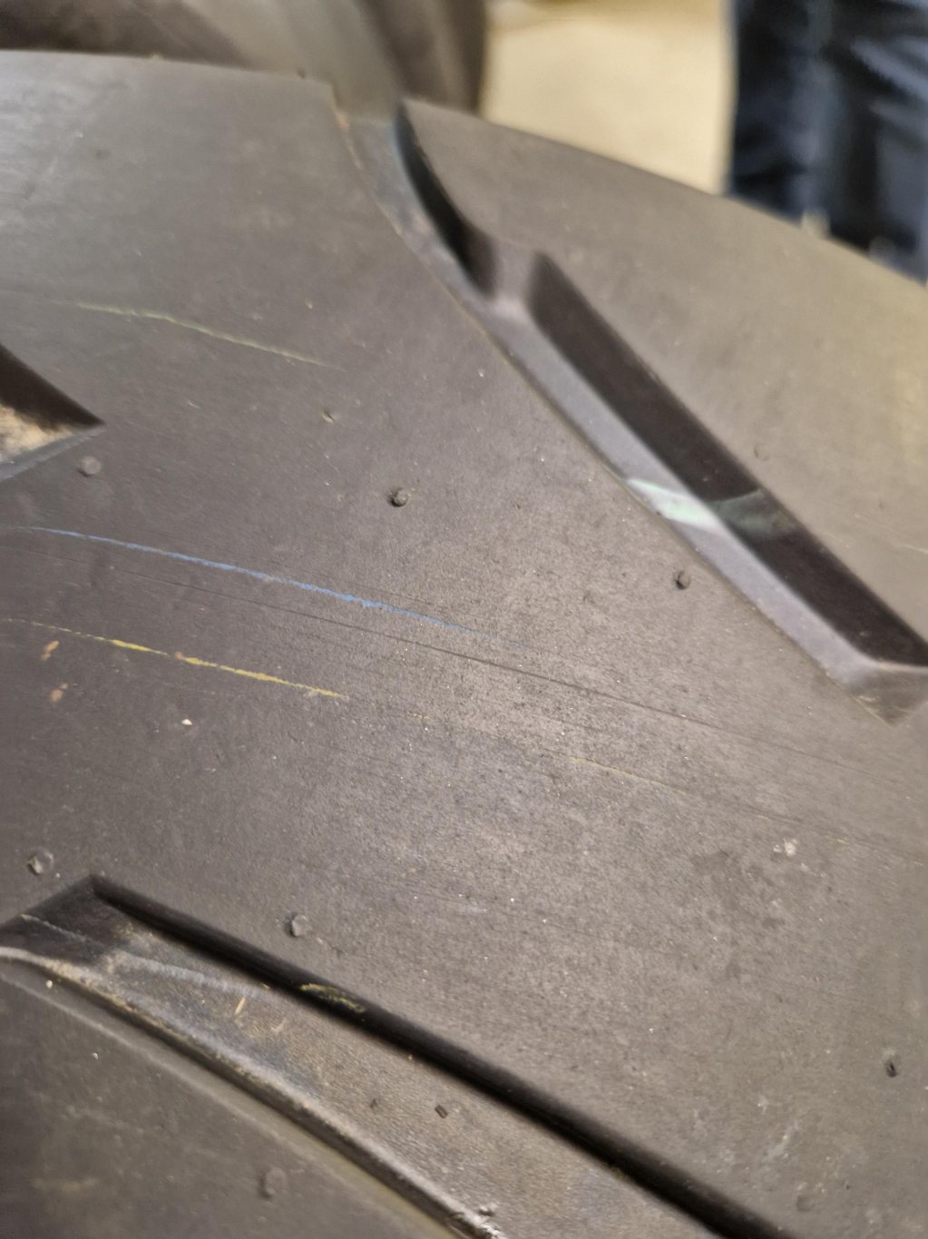 Gått några mil på gatan bara. Nabbarna är kvar och blå/gula sträcken syns. Inköpta hos r-däck.se ,kvitto finns.