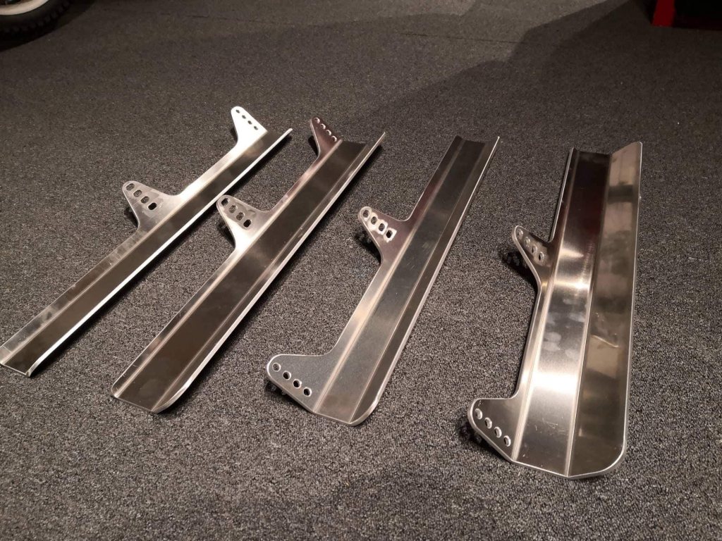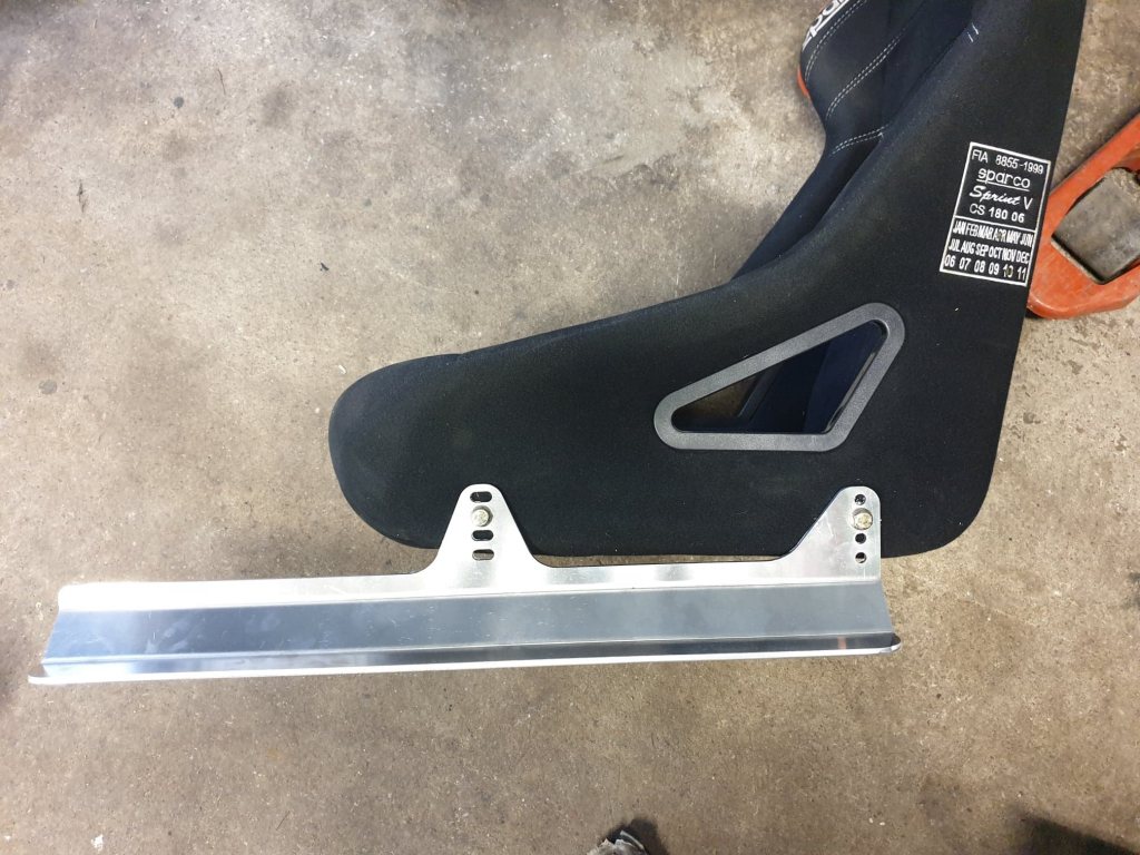 Stolsfästen för sidomonterade sportstolar för att passa i BMW E36. Dessa är gjorda för att monteras direkt i originalhålen i karossen, man behöver alltså inget ytterligare underrede. Passar även E46 med 20mm distans under i bakkant, passar troligen fler bilmodeller också men har ej testat i andra. Passar de flesta sidomonterade sportstolar som har standard 290mm mellan fästhålen. Alla Sparco stolar tex har dessa mått. Laserskurna i 5mm aluminium och väger endast 2kg/stol. 63cm långa så går att montera stolen så långt bak det bara går, hela vägen bak mot baksätet om man så vill. Man borrar bara hål där man vill ha stolen och om man sen vill kapar man av det överflödiga som sticker ut i framkant, då får man ner vikten ytterligare lite till. Dessa fästen är helt nya och aldrig använda, jag har några extra uppsättningar över efter att jag tillverkade nya fästen åt mig själv samt kompisens bil. Priset är 1600kr för förarstol + passagerarstol (alltså 4 skenor totalt). Finns att hämta i Sala, men kan skickas för 120kr med Schenker.