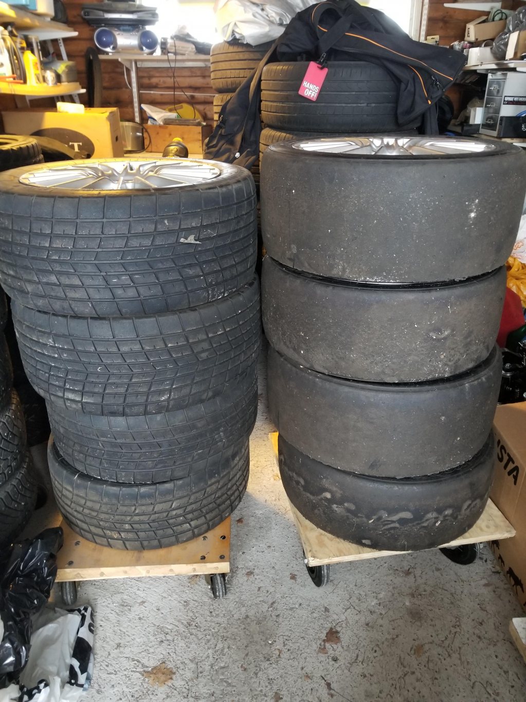 Begagnade i gott skick, däcken hårda men bra för test. 2st 9,5 J x18 med Hankook slicks 260/660 2st 8 J x18 240/640 4000:- 2st 9,5 J x18 Michelin regndäck 27/68 P2A 2st 8 J x18 24/65 4000:- Lösa däck 2st Slicks Avon 250/640 R18 2st 240/640 R18 800:- 2st Regndäck Avon 250/640 R18 2st 240/640 R18 800:- Suttit på en Boxter med spacer men passar ju MB mfl. Lelle Peterson 0708658400 mail lennart.peterson@gipp.se Bor i Nacka